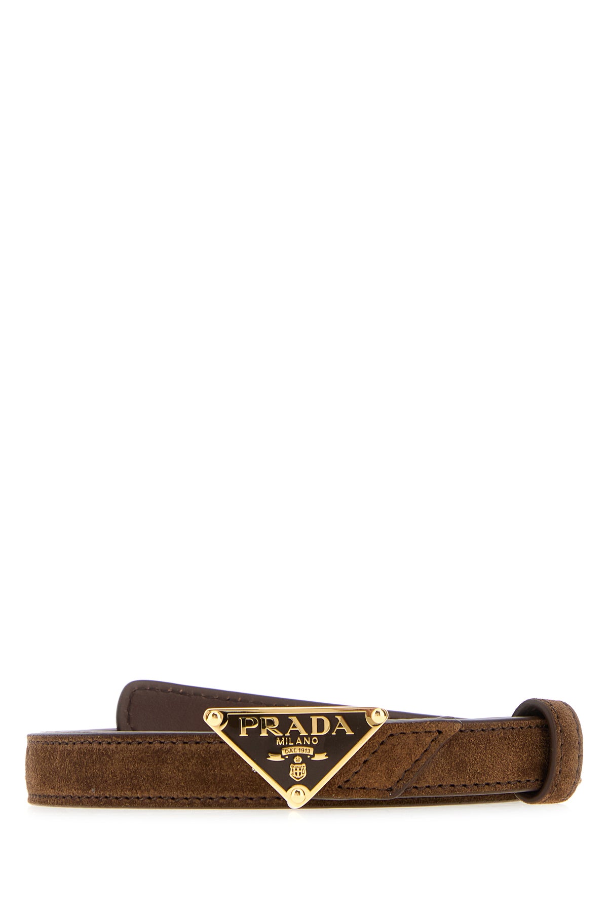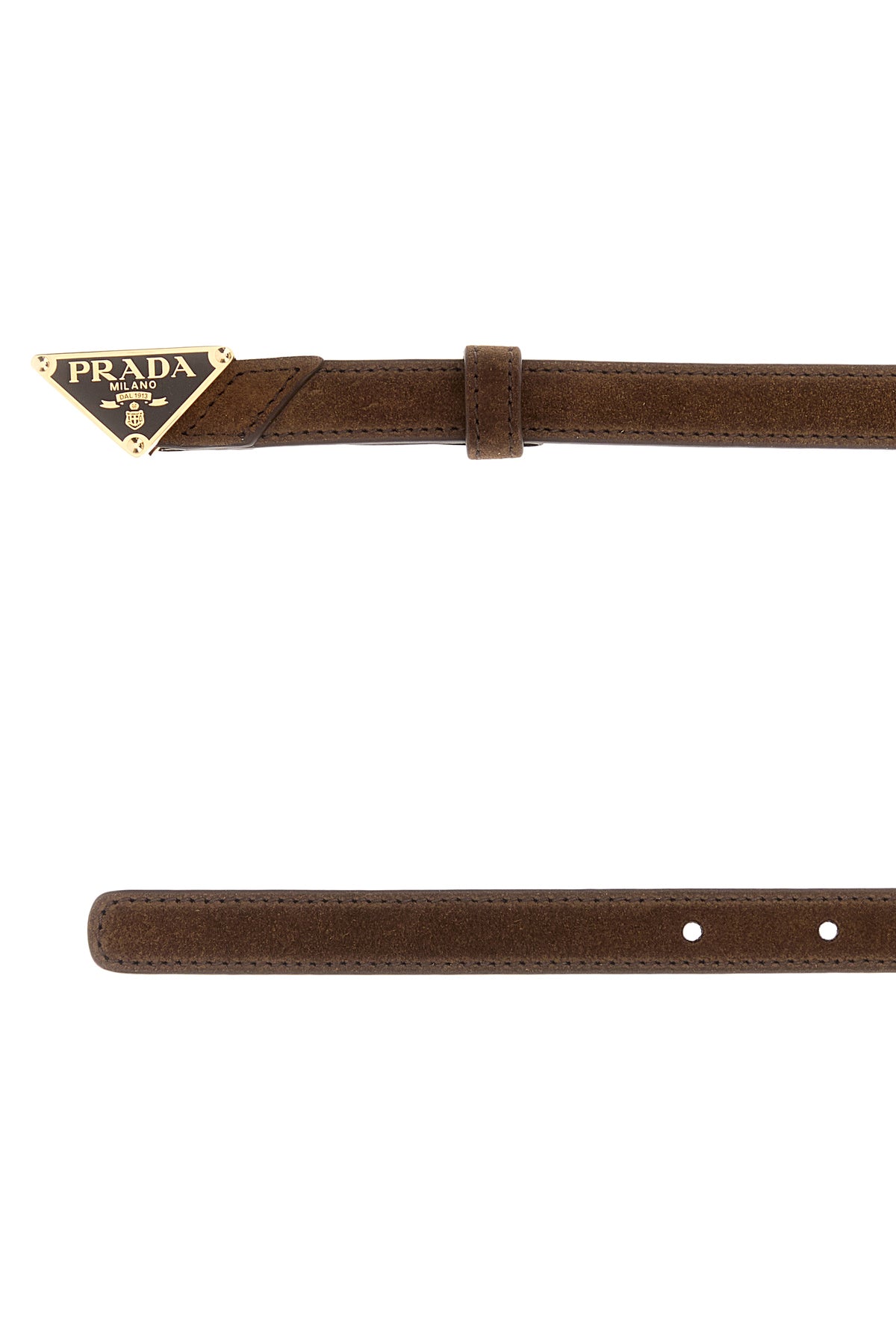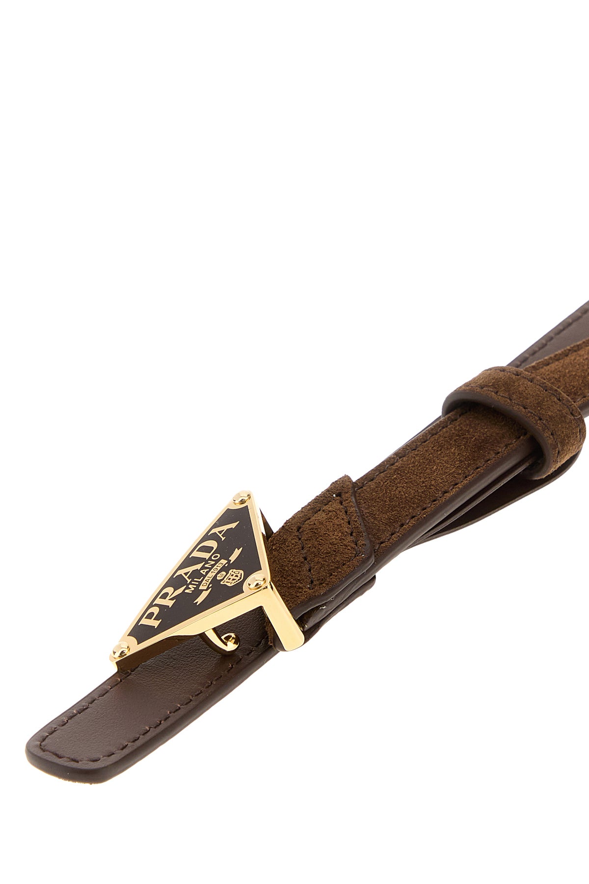 Cintura realizzata in pelle scamosciata arricchita da iconico triangolo metallico logato.