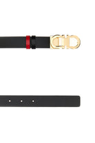 Cintura reversibile realizzata in pelle di vitello liscia caratterizzata da fibbia metallica Gancini.