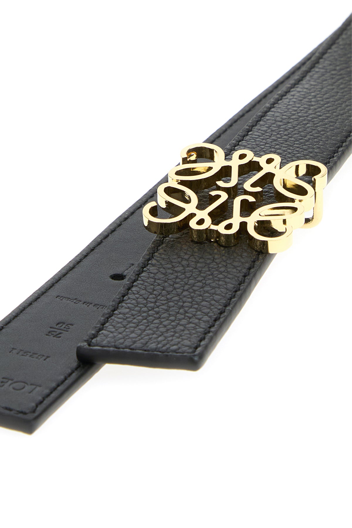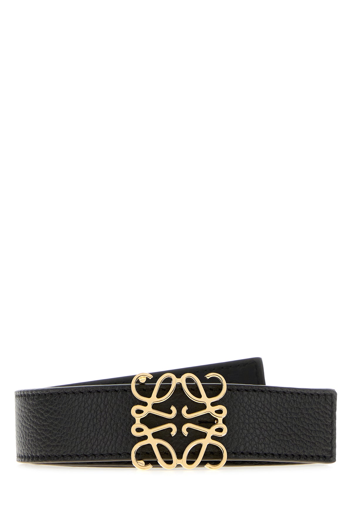 Cintura reversibile realizzata in pelle di vitello liscia arricchita da dettaglio metallico Anagram sulla parte frontale.