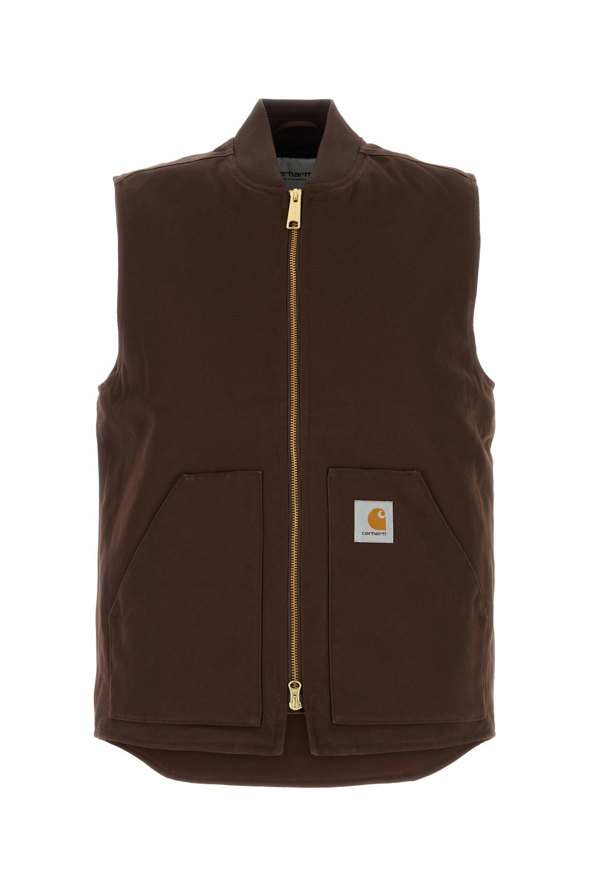 Gilet realizzato in puro cotone arricchito da applicazione logata a contrasto sulla parte frontale.