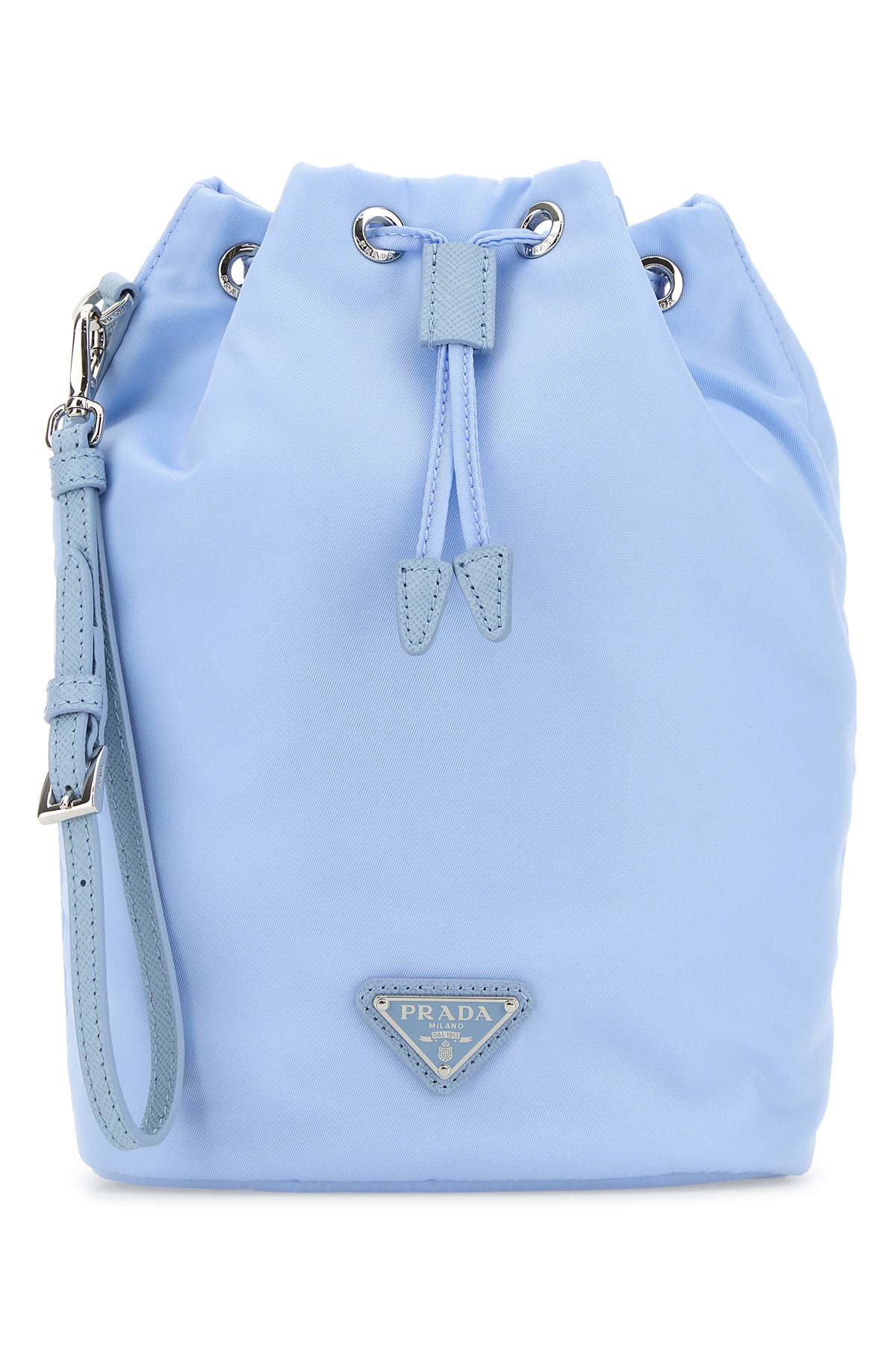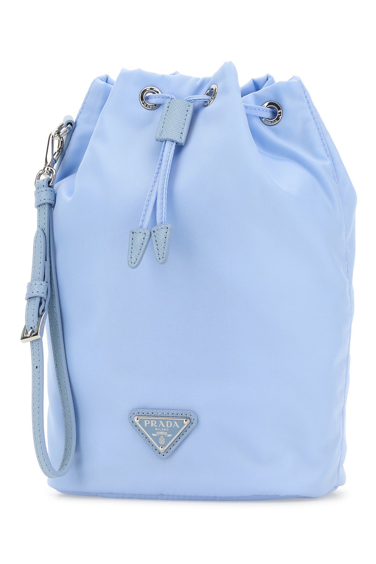 Clutch realizzata in nylon arricchita da iconico triangolo logato sulla parte frontale.