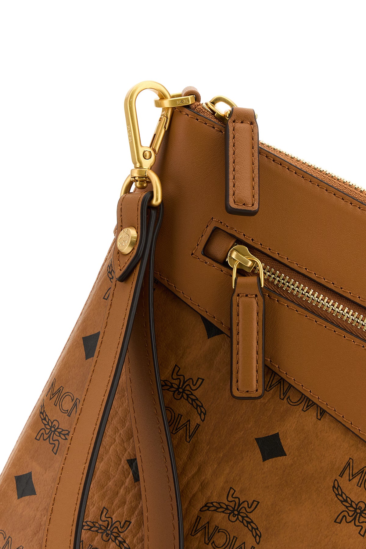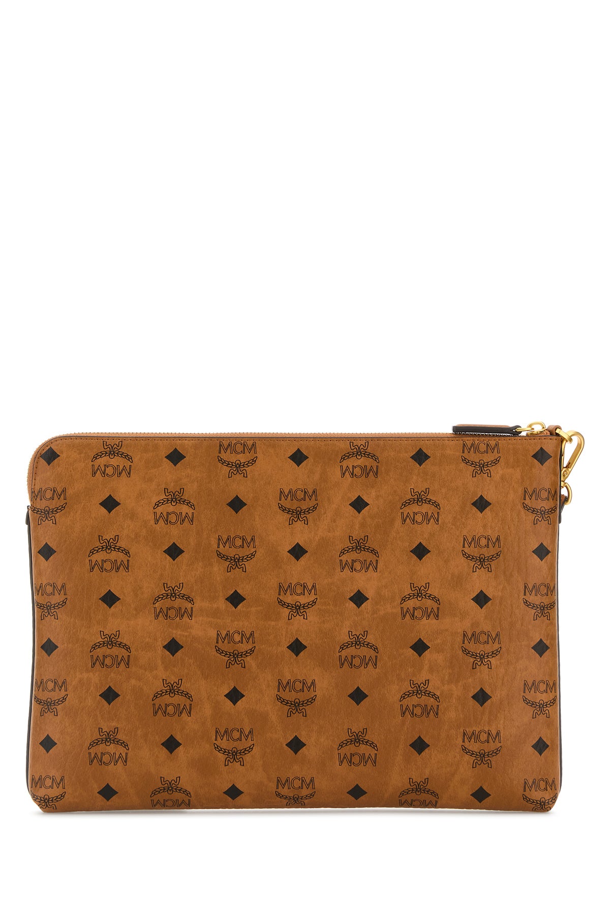Clutch realizzata in tela caratterizzata da stampa Visetos Monogram su tutta la superficie e stampa Laurel laminata sulla parte frontale.