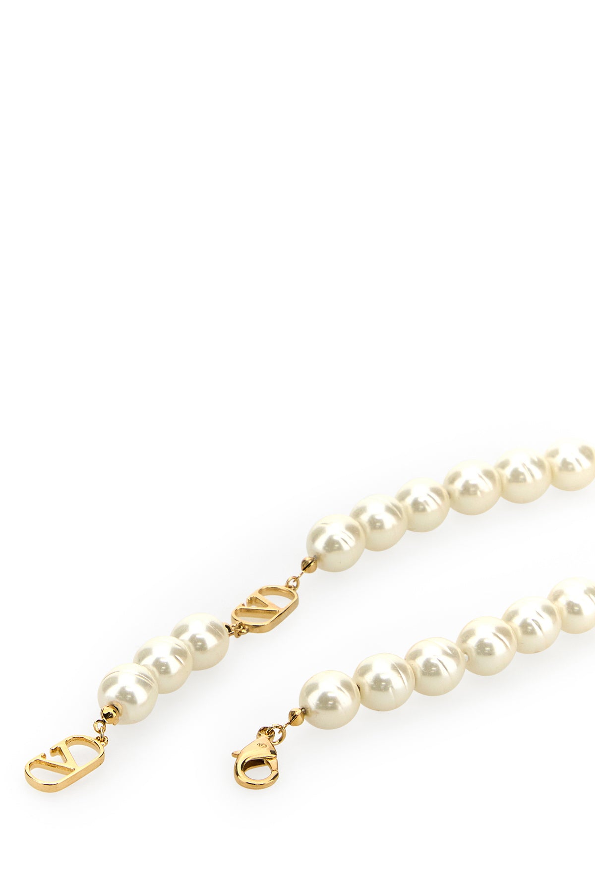 Collana realizzata in perle arricchita da charm a forma di cuore con dettaglio metallico VLogo.