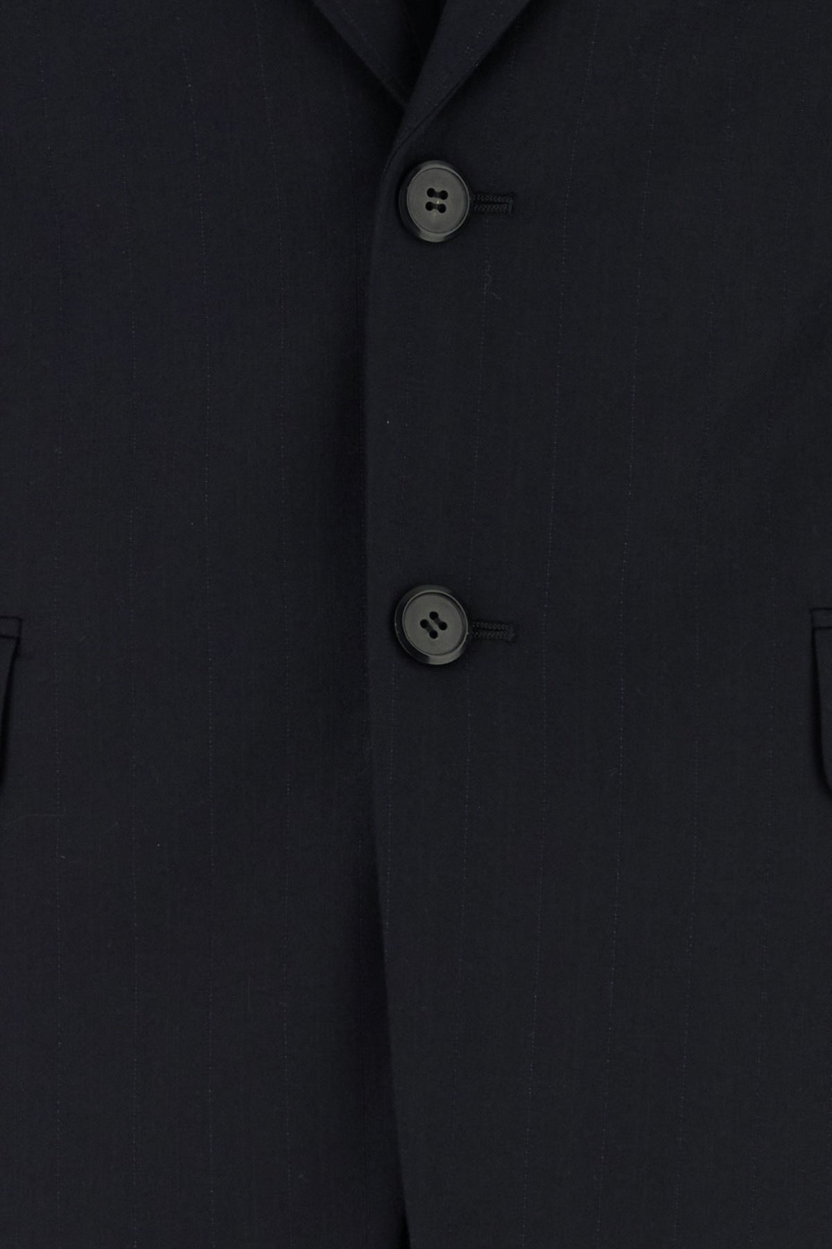 Completo realizzato in lana vergine e cashmere caratterizzato da ricamo a motivo gessato su tutta la superficie.