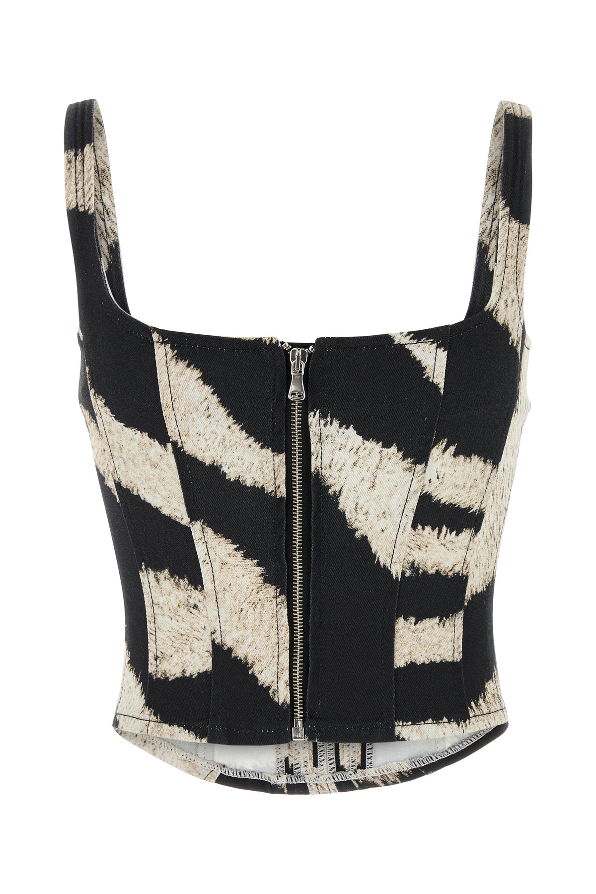 Corpetto realizzato in puro cotone caratterizzato da particolare stampa su tutta la superficie.
