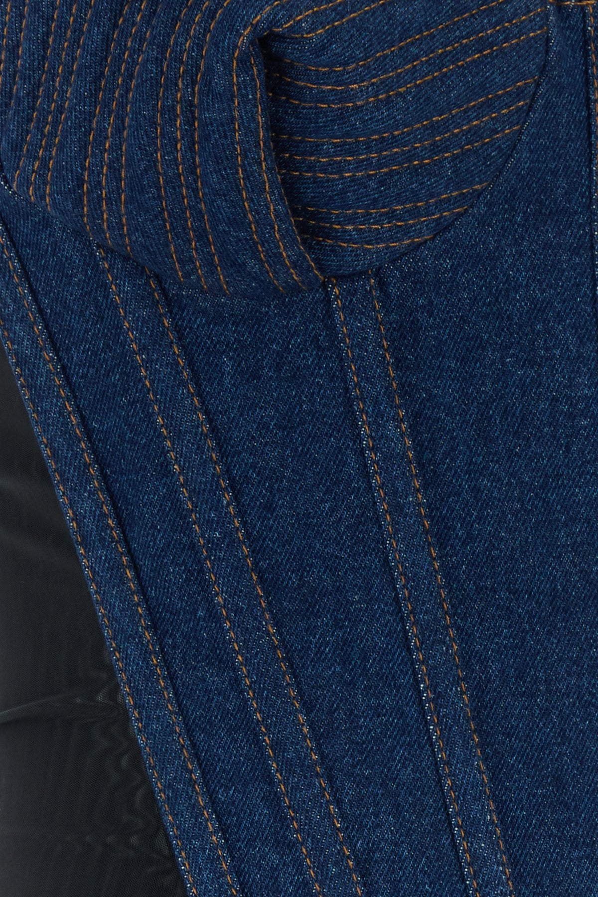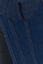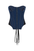 Corpetto realizzato in denim di puro cotone con inserti in nylon stretch sui lati.
