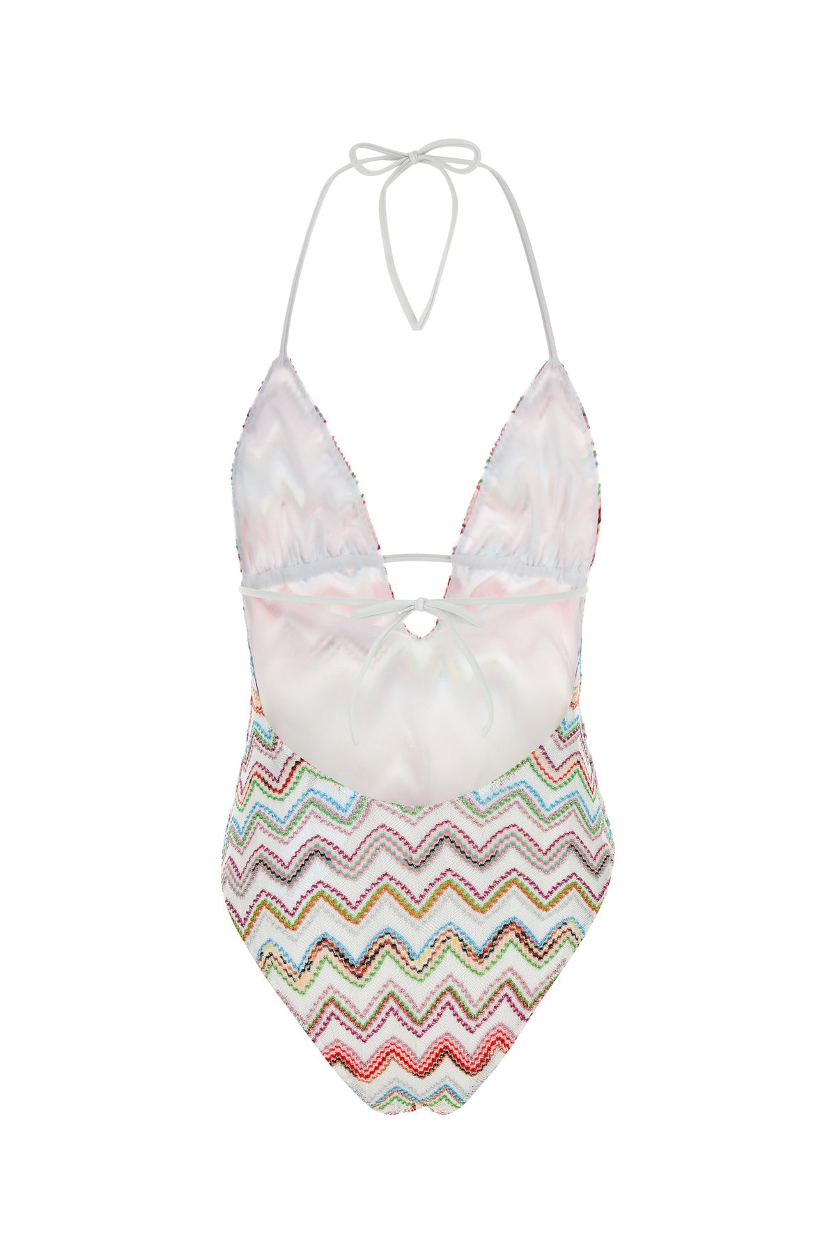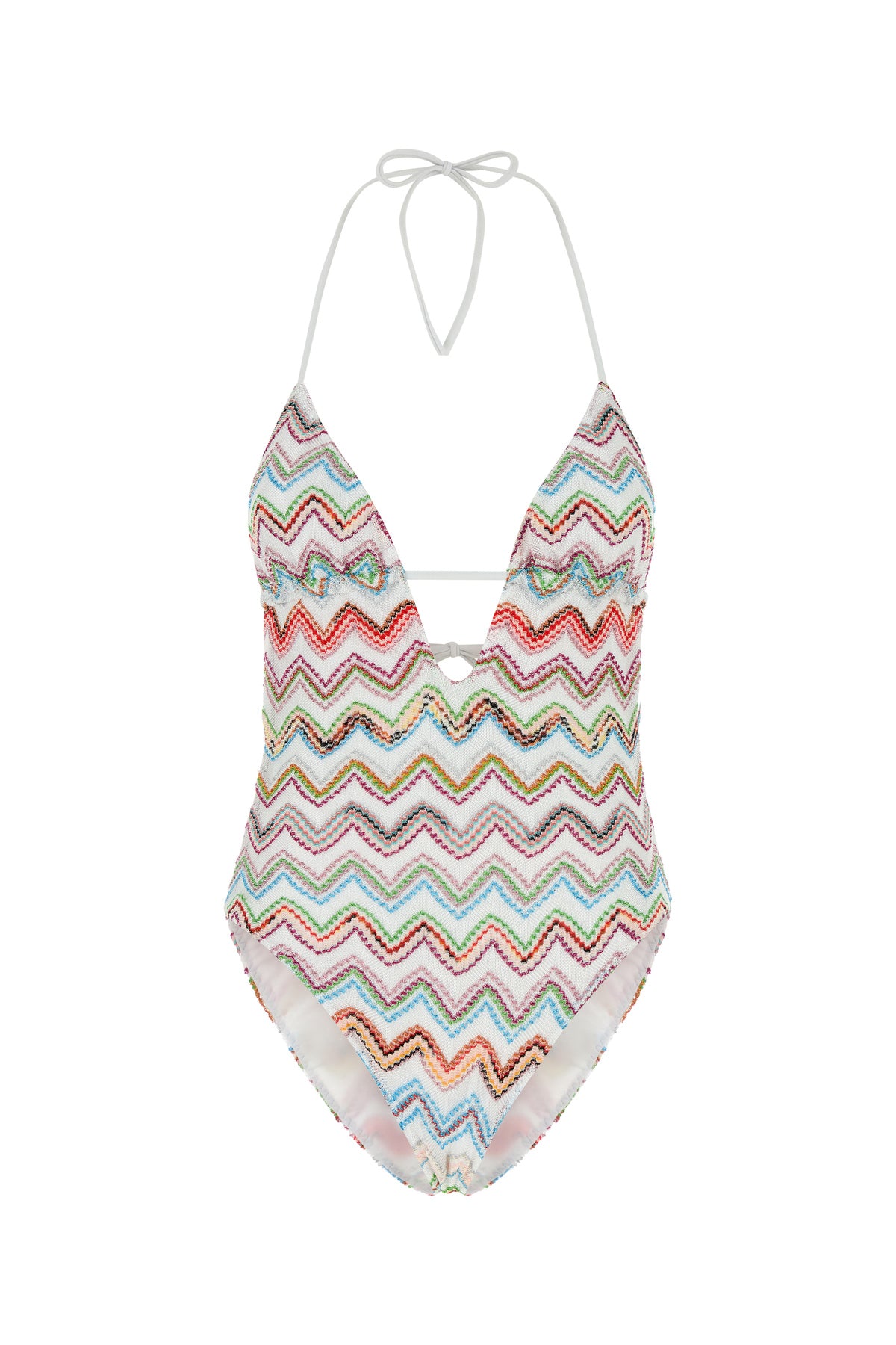 Costume intero realizzato in misto viscosa con fili in lurex caratterizzato da particolare ricamo su tutta la superficie.
