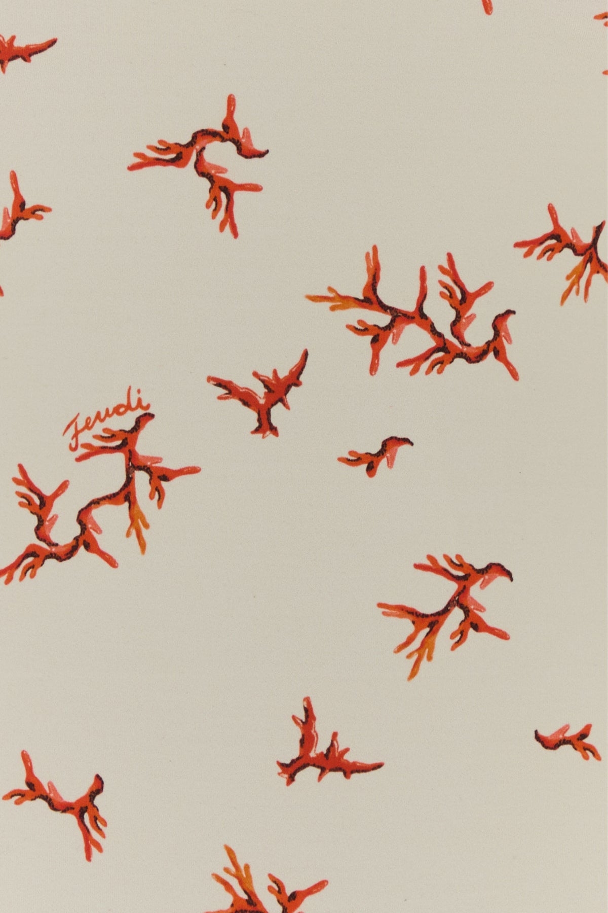 Costume intero realizzato in nylon stretch caratterizzato da stampa Corallo su tutta la superficie arricchito da dettaglio metallico a forma di conchiglia sulla parte superiore.
