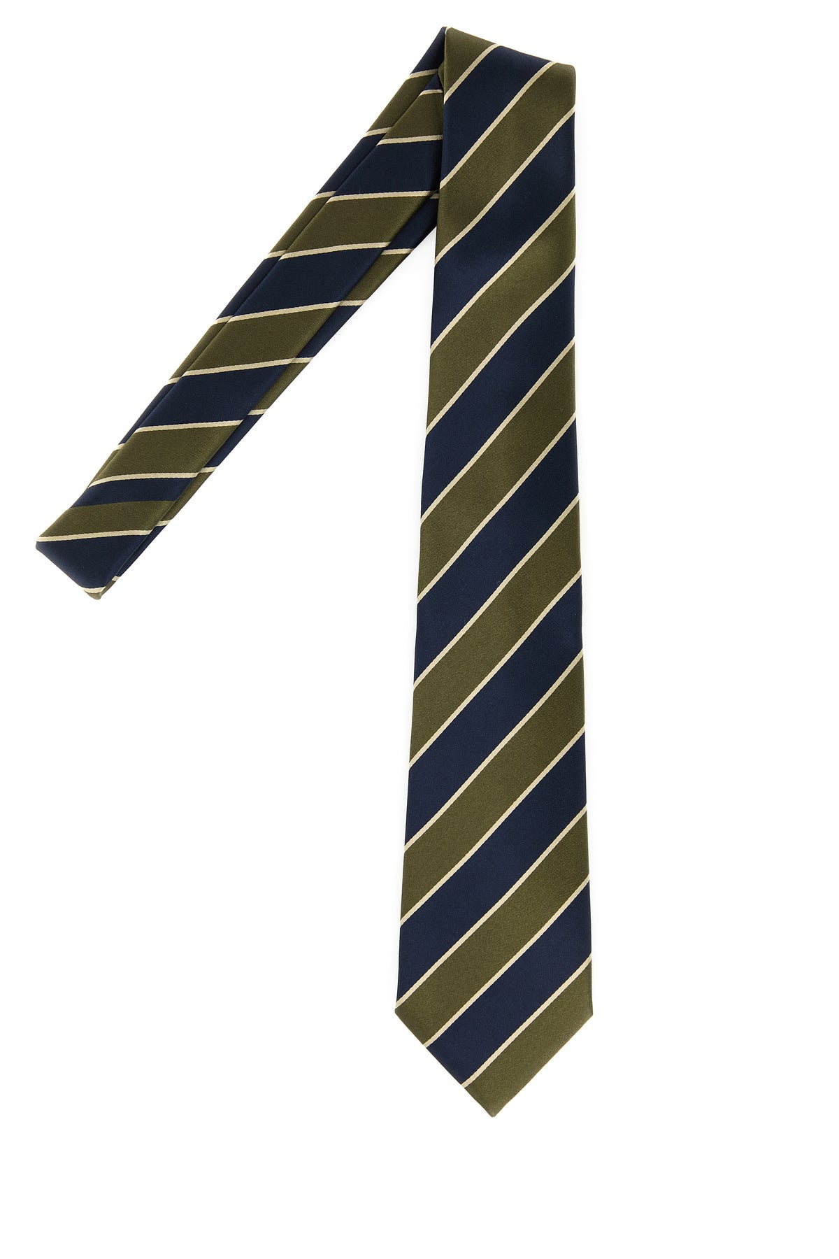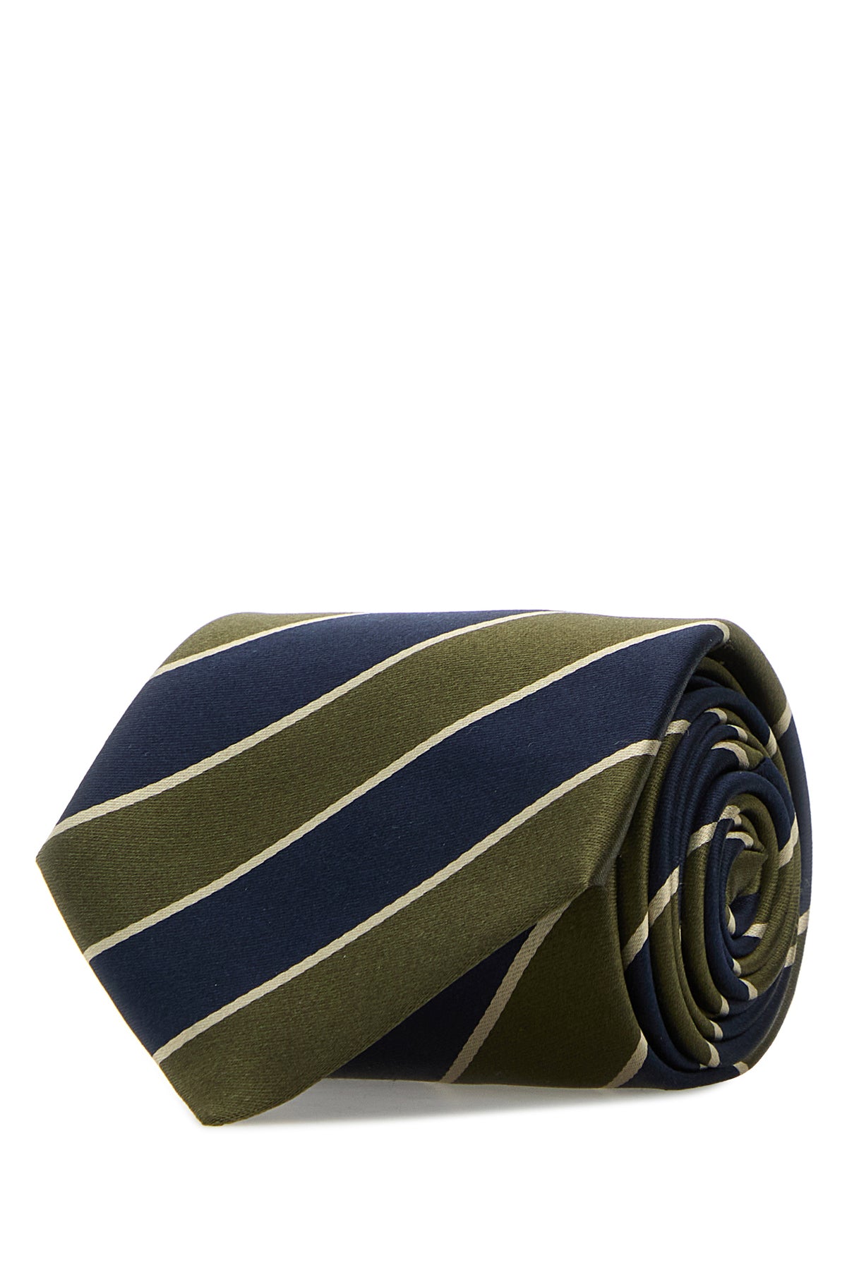 Cravatta realizzata in raso di pura seta caratterizzata da ricamo a righe su tutta la superficie.