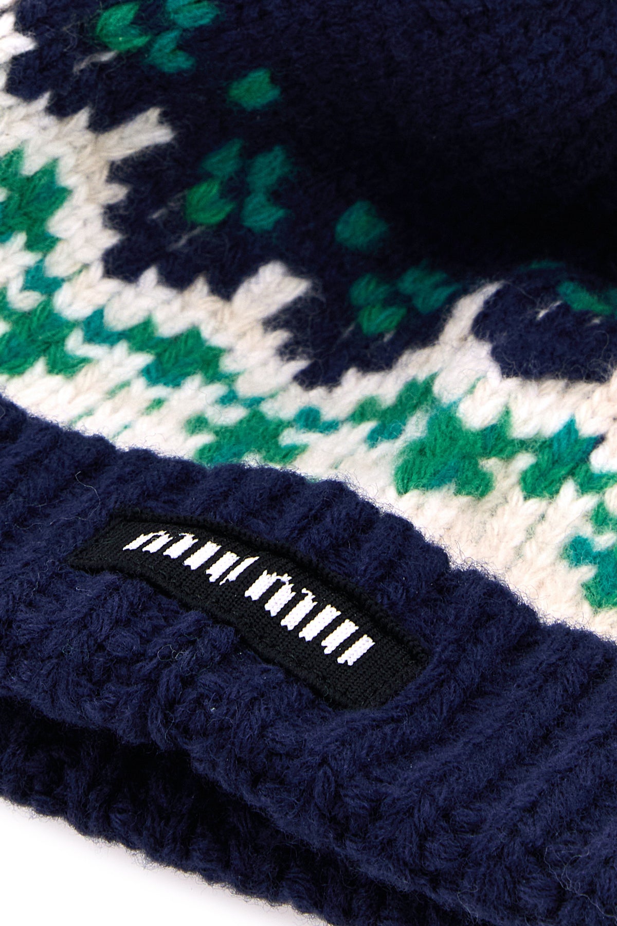 Cuffia realizzata in pura lana vergine caratterizzata da particolare ricamo su tutta la superficie arricchita da etichetta logata sul lato.