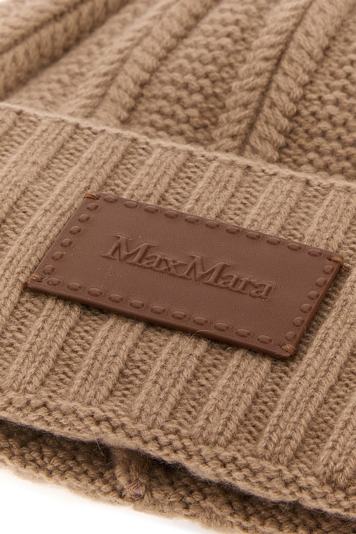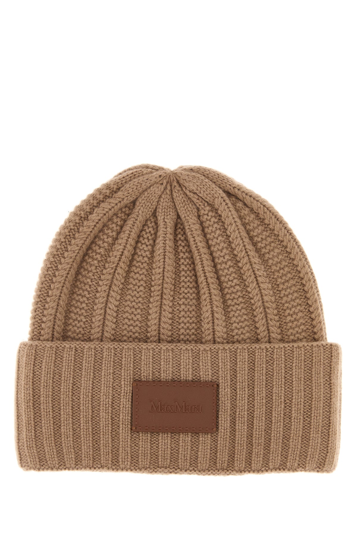 Cuffia realizzata in puro cashmere arricchita da etichetta logata in pelle tonale sulla parte frontale.