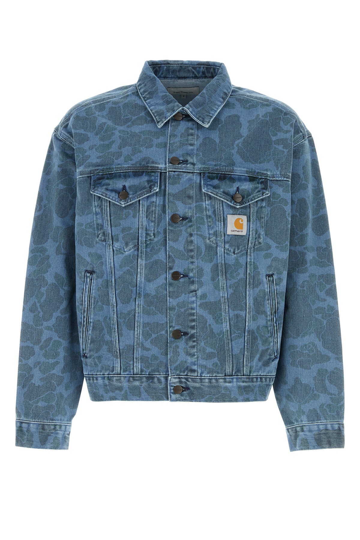 Giubbino realizzato in denim di puro cotone biologico caratterizzato da stampa camouflage su tutta la superficie ed etichetta logata sul petto.