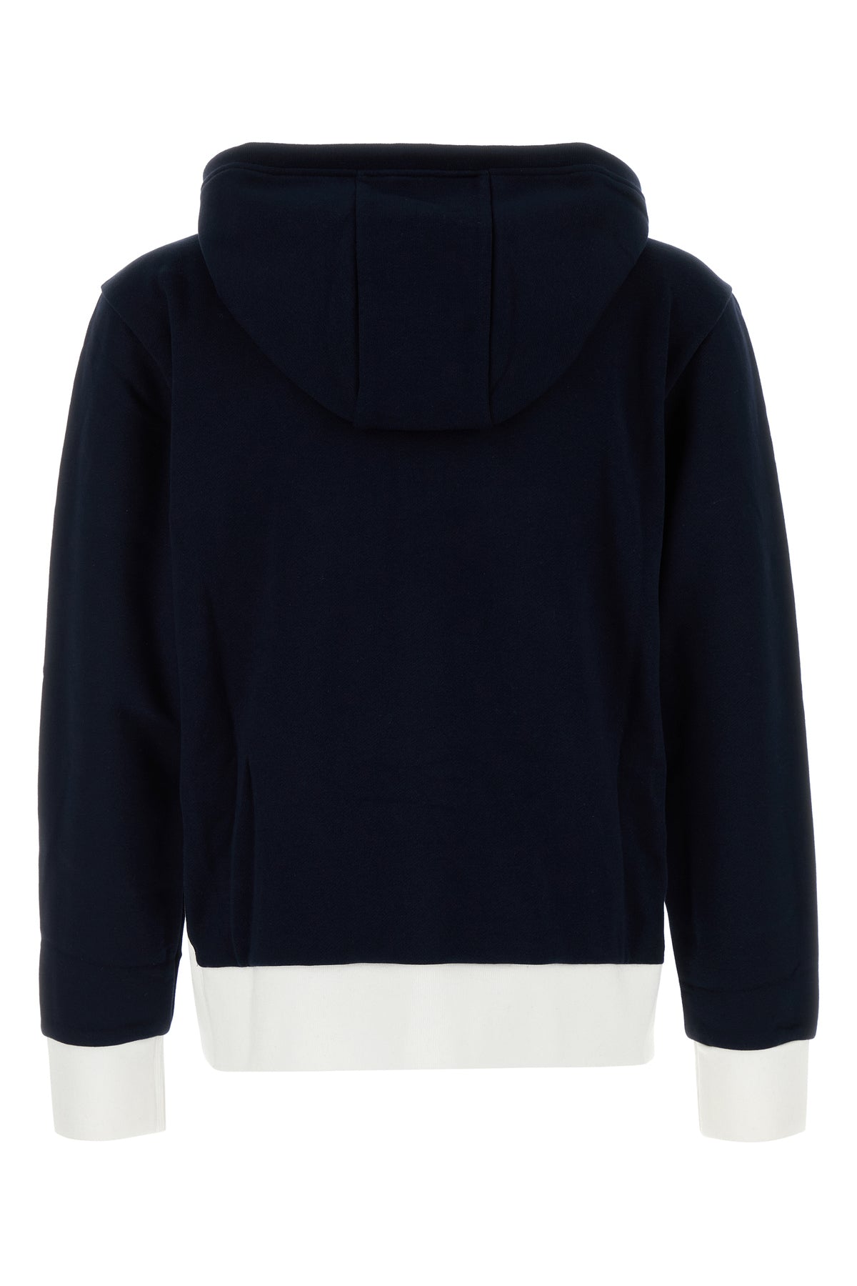 Felpa realizzata in puro cotone caratterizzata da bande a contrasto sui lati arricchita da applicazione logata sulla parte frontale e iconica etichetta tricolore sul retro.
