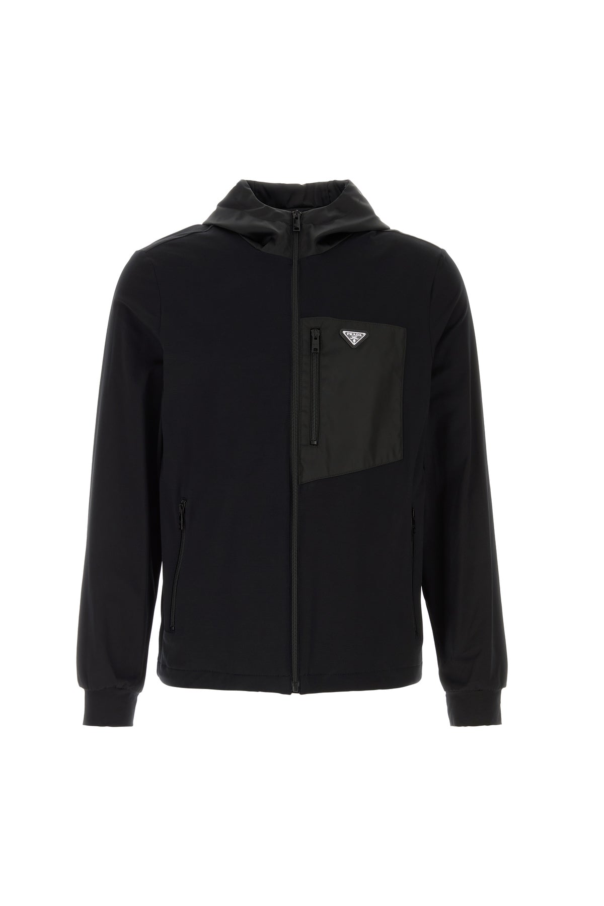 Felpa realizzata in cotone stretch con inserto in Re-Nylon tonale arricchita da iconico triangolo logato in metallo sul petto.