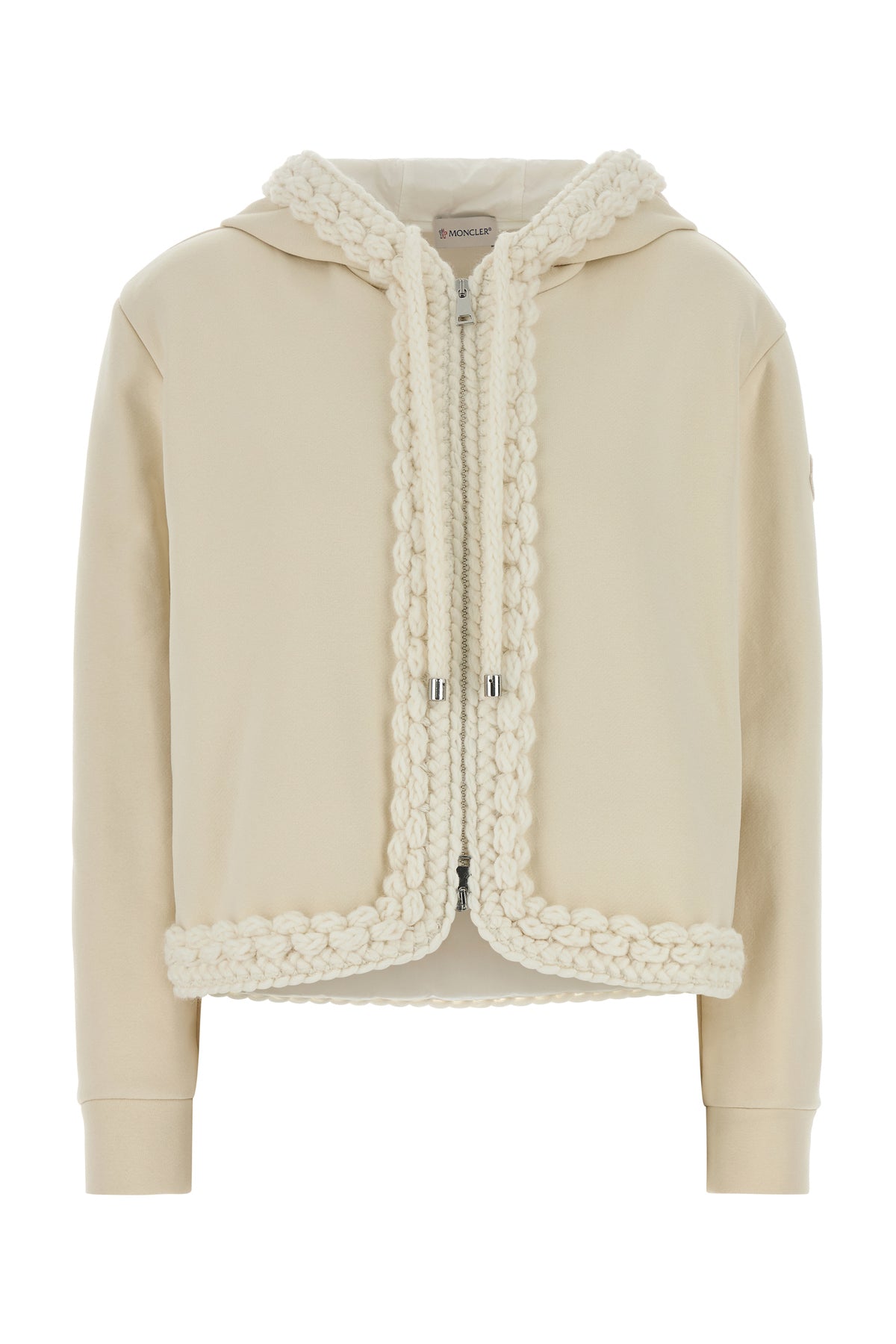 Felpa realizzata in misto cotone con profilature lavorate a maglia arricchita da applicazione logata tonale sulla manica.