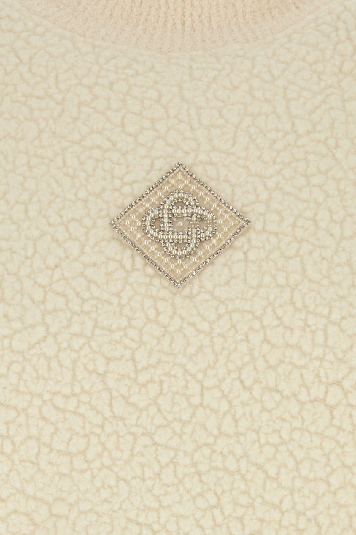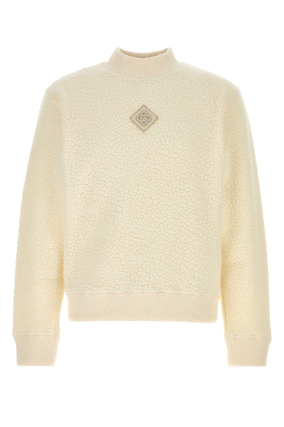 Felpa realizzata in spugna di misto lana arricchita da decorazione gioiello logata sulla parte frontale.