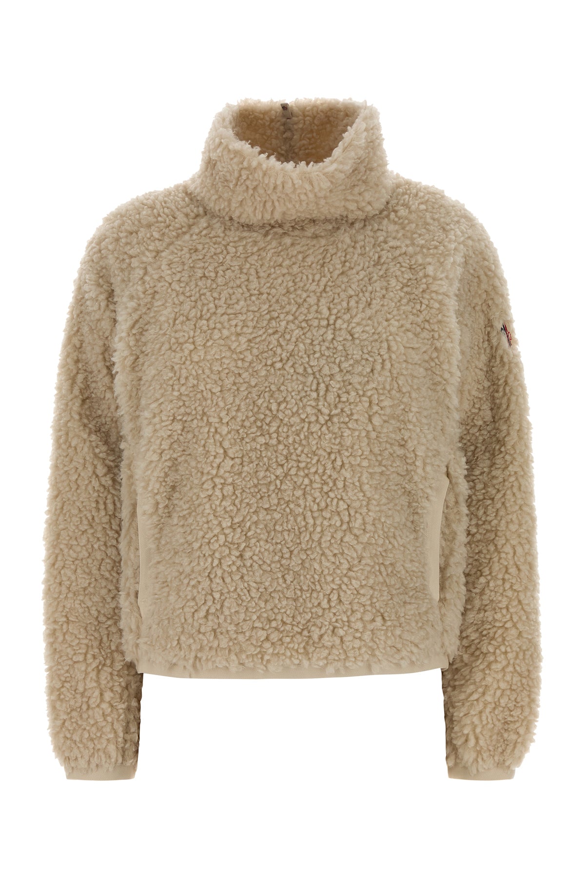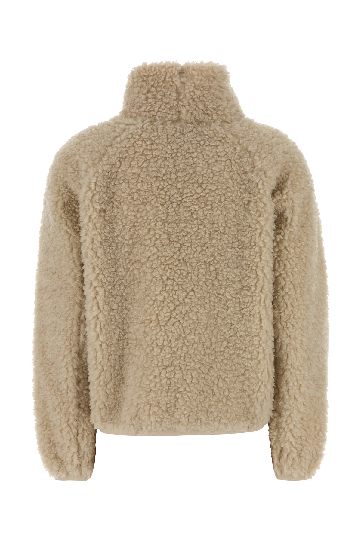 Felpa realizzata in teddy arricchita da applicazione logata a contrasto sulla manica.