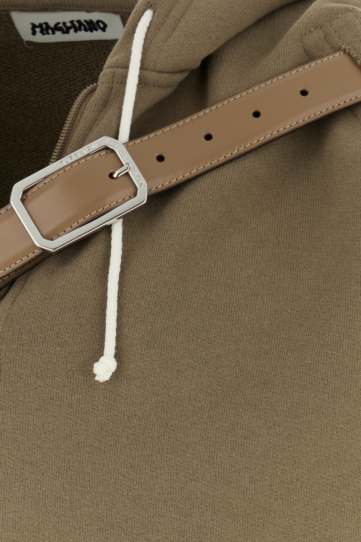 Felpa realizzata in puro cotone arricchita da cinturino regolabile in pelle con fibbia metallica sulla parte superiore.