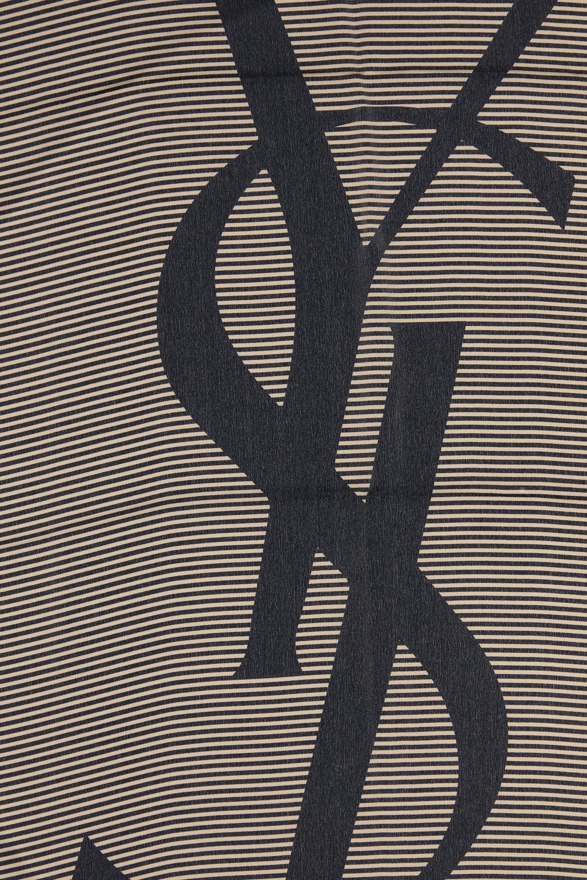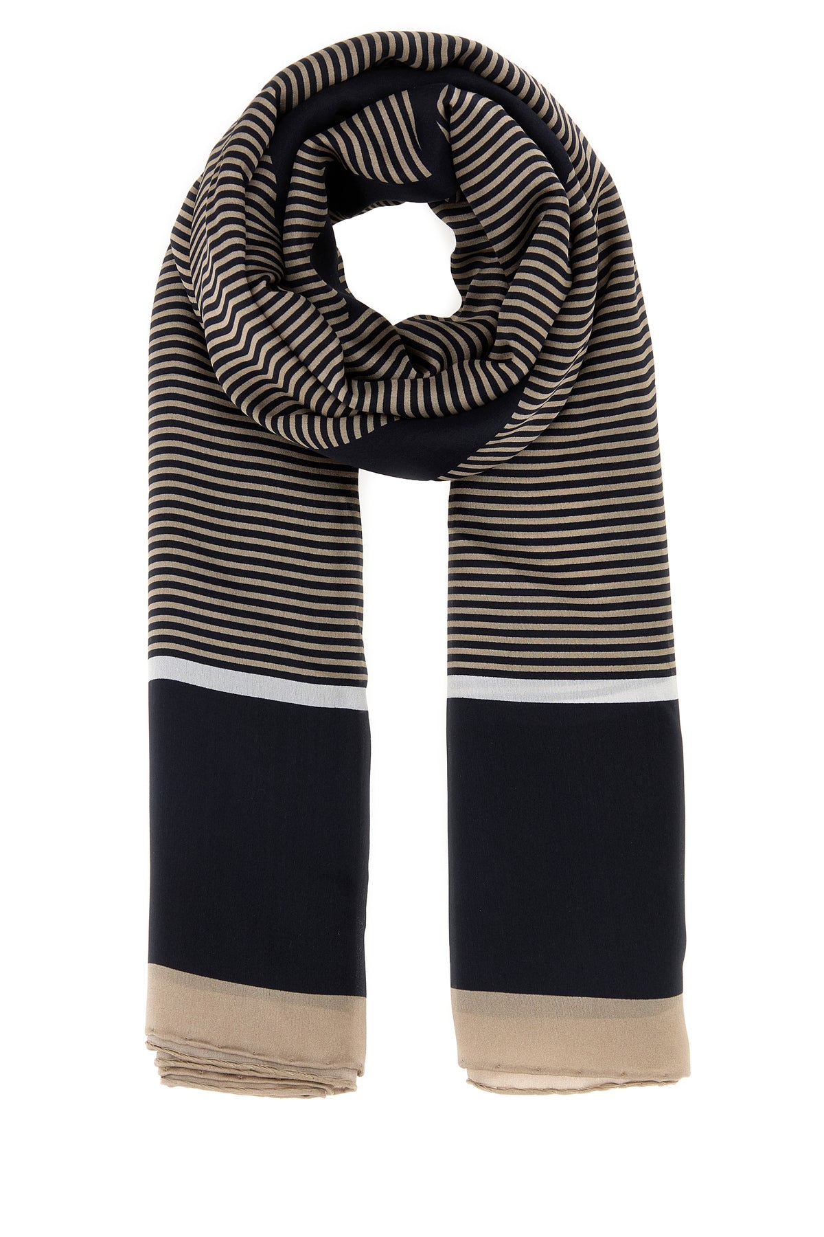 Foulard realizzato in pura seta caratterizzato da ricamo a righe su tutta la superficie e ricamo Monogram.