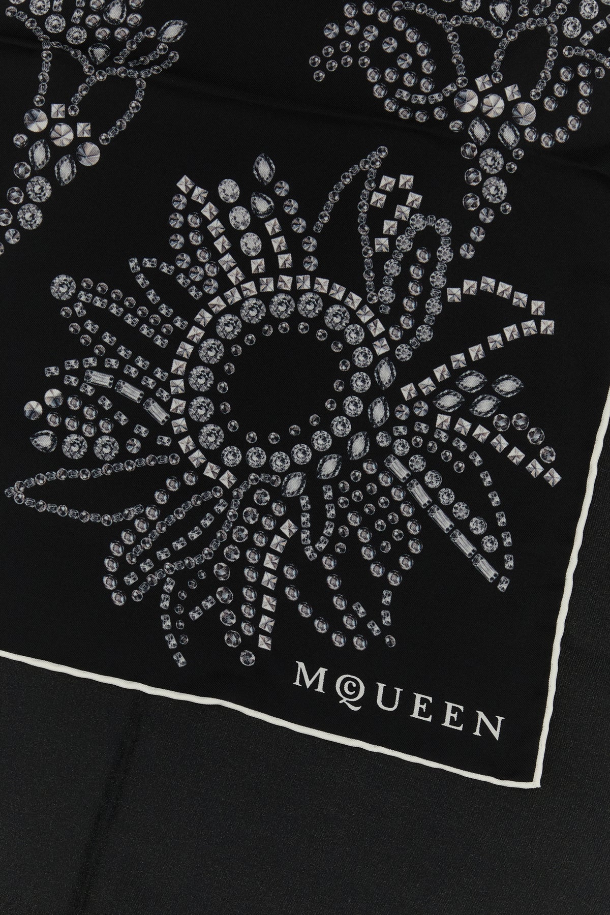 Foulard realizzato in pura seta caratterizzato da particolare stampa su tutta la superficie.