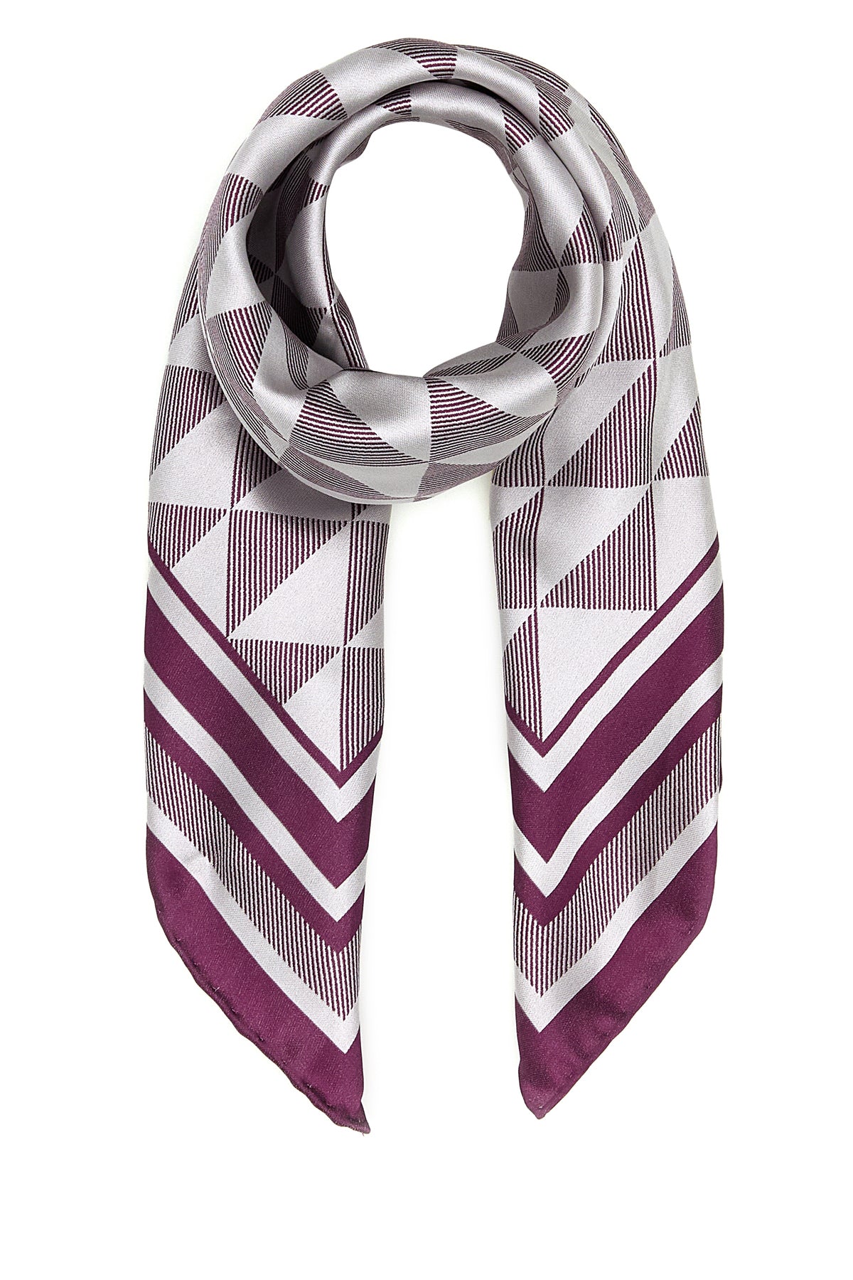 Foulard realizzato in twill di pura seta caratterizzato da stampa logata su tutta la superficie.