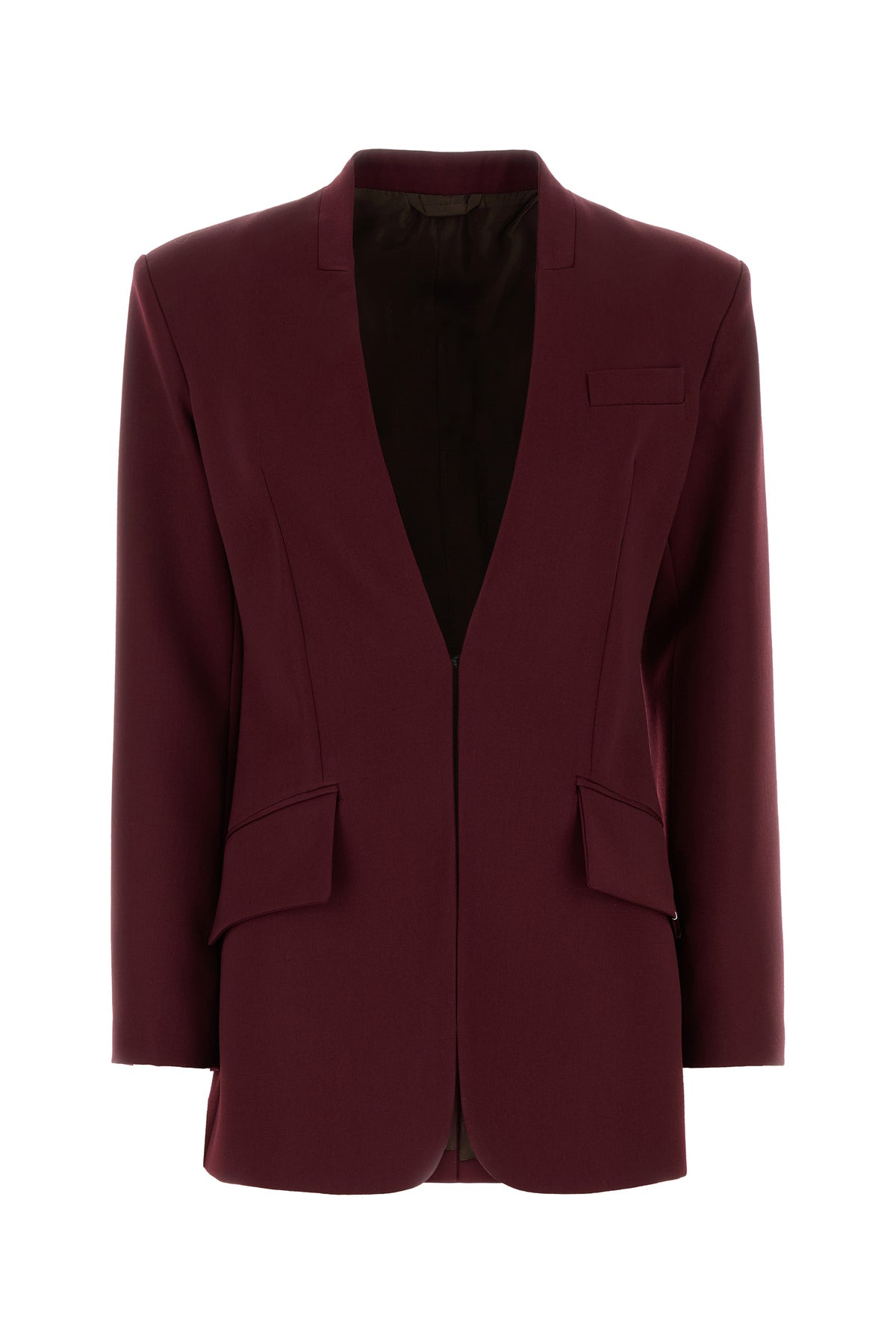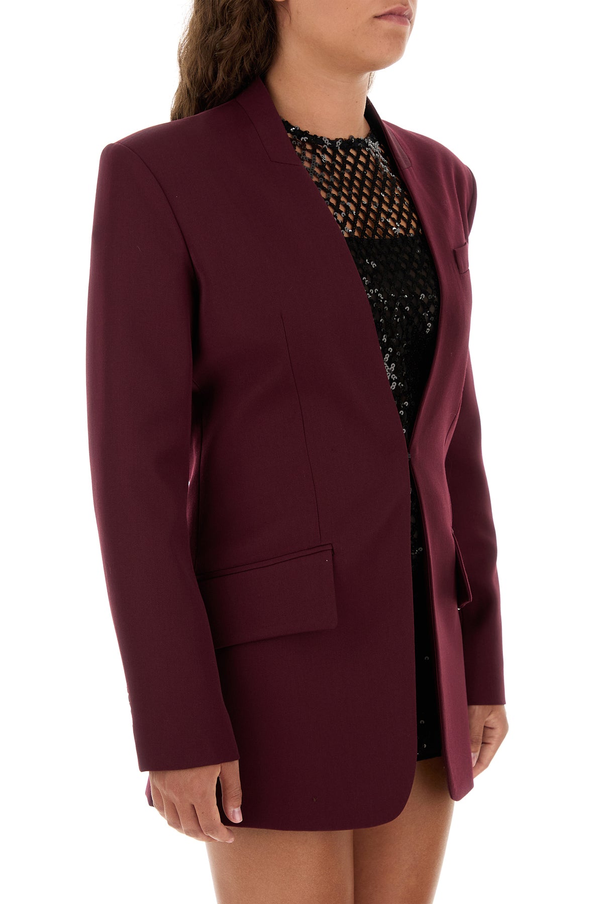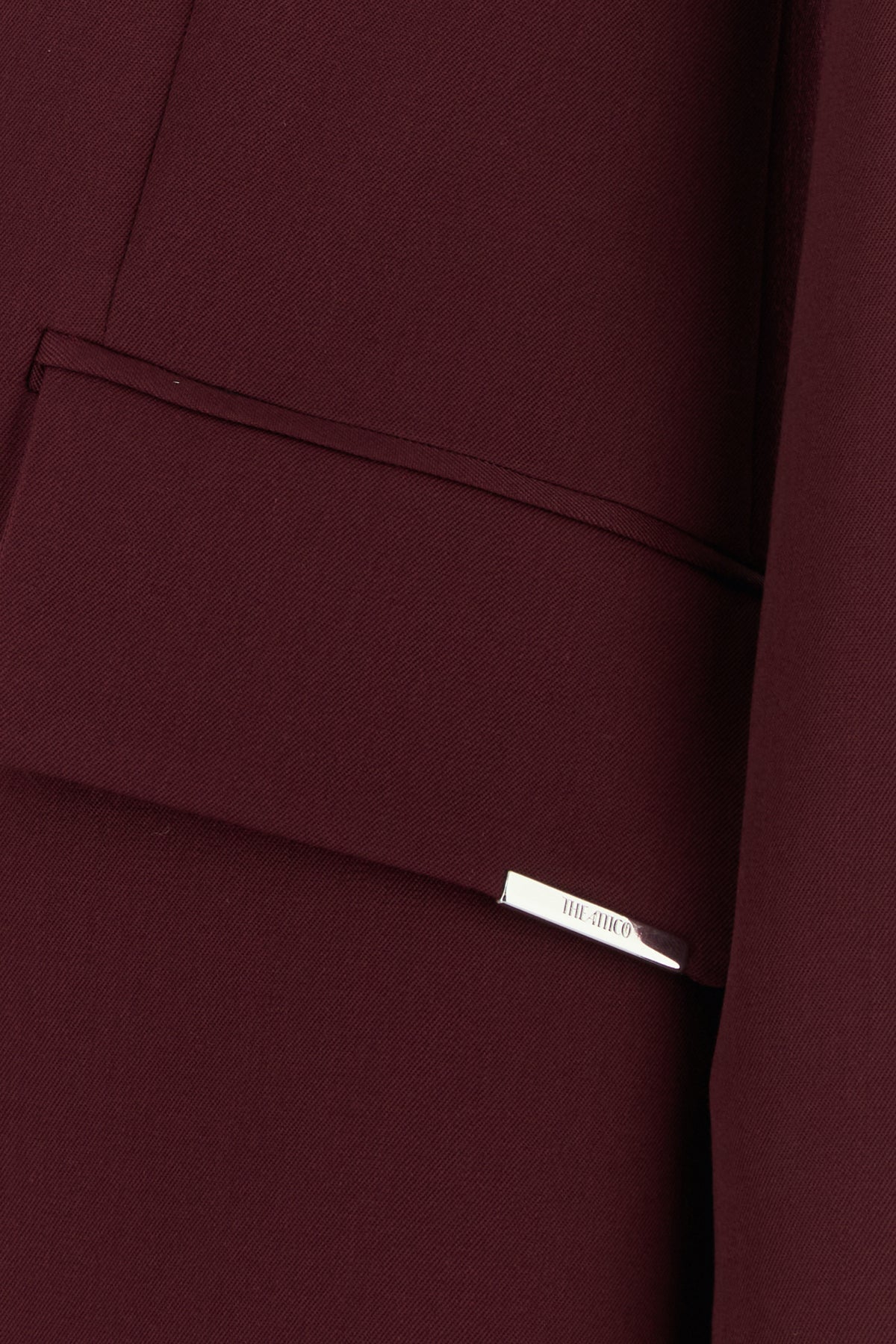 Giacca realizzata in gabardine di pura lana vergine arricchita da targhetta metallica logata sul lato.