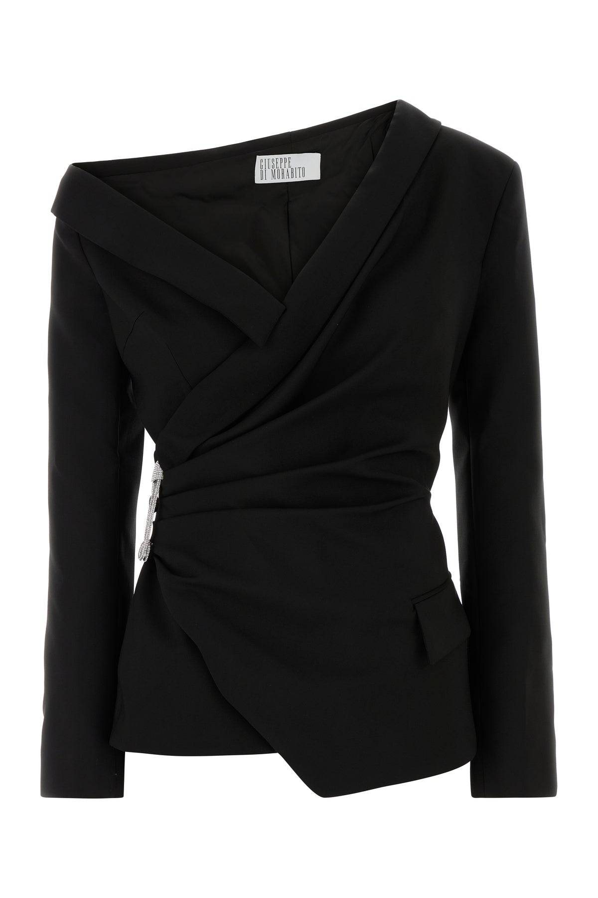 Giacca realizzata in pura lana arricchita da spilla gioiello sul lato.