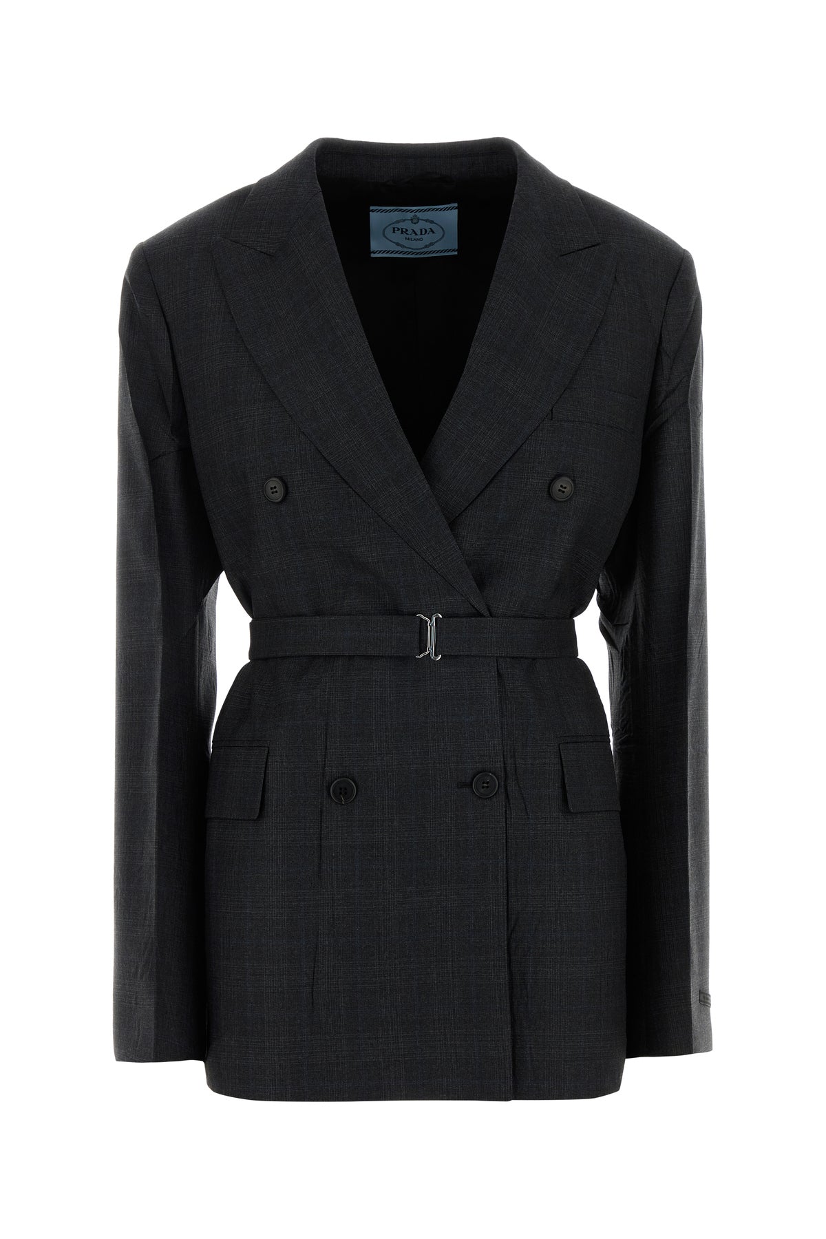 Giacca realizzata in pura lana vergine caratterizzata da ricamo a quadri su tutta la superficie arricchiti da etichetta logata sul polsino.