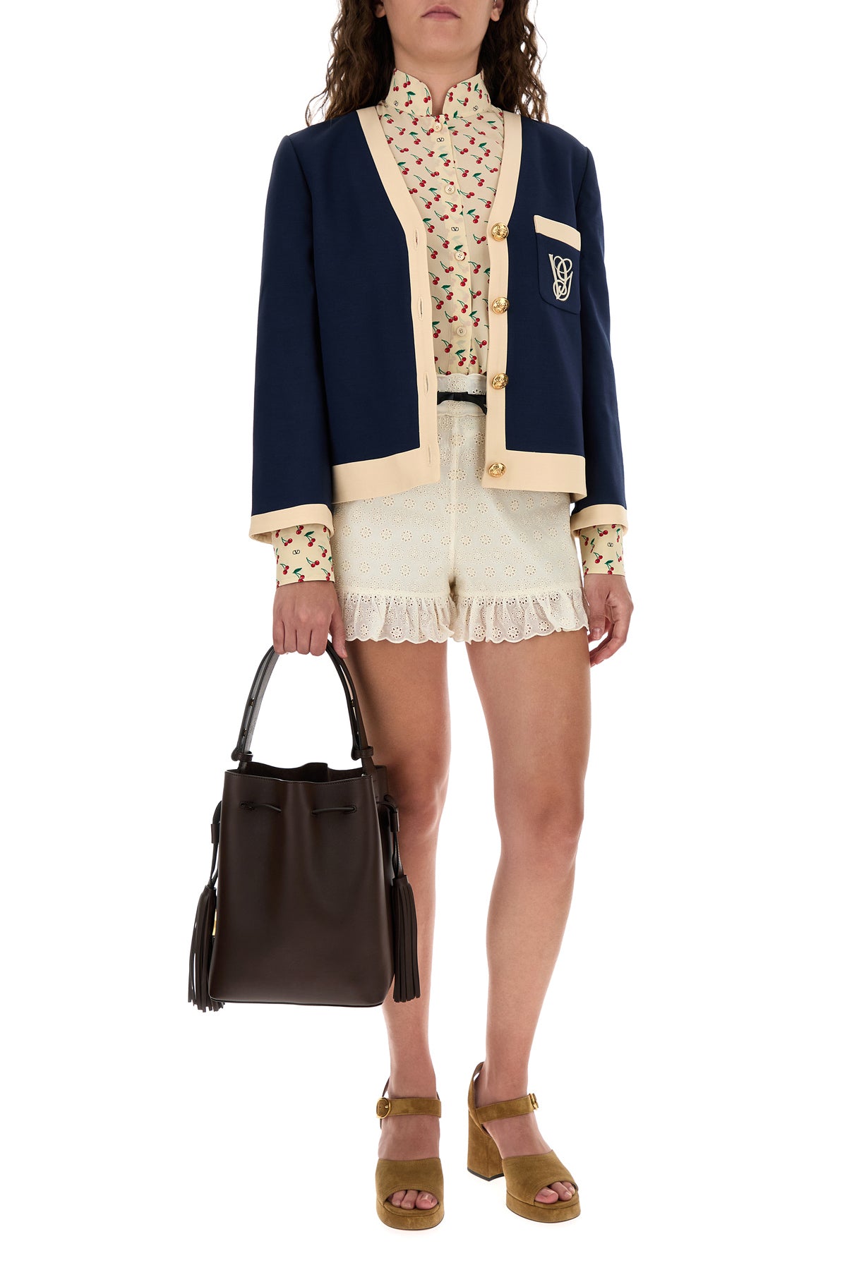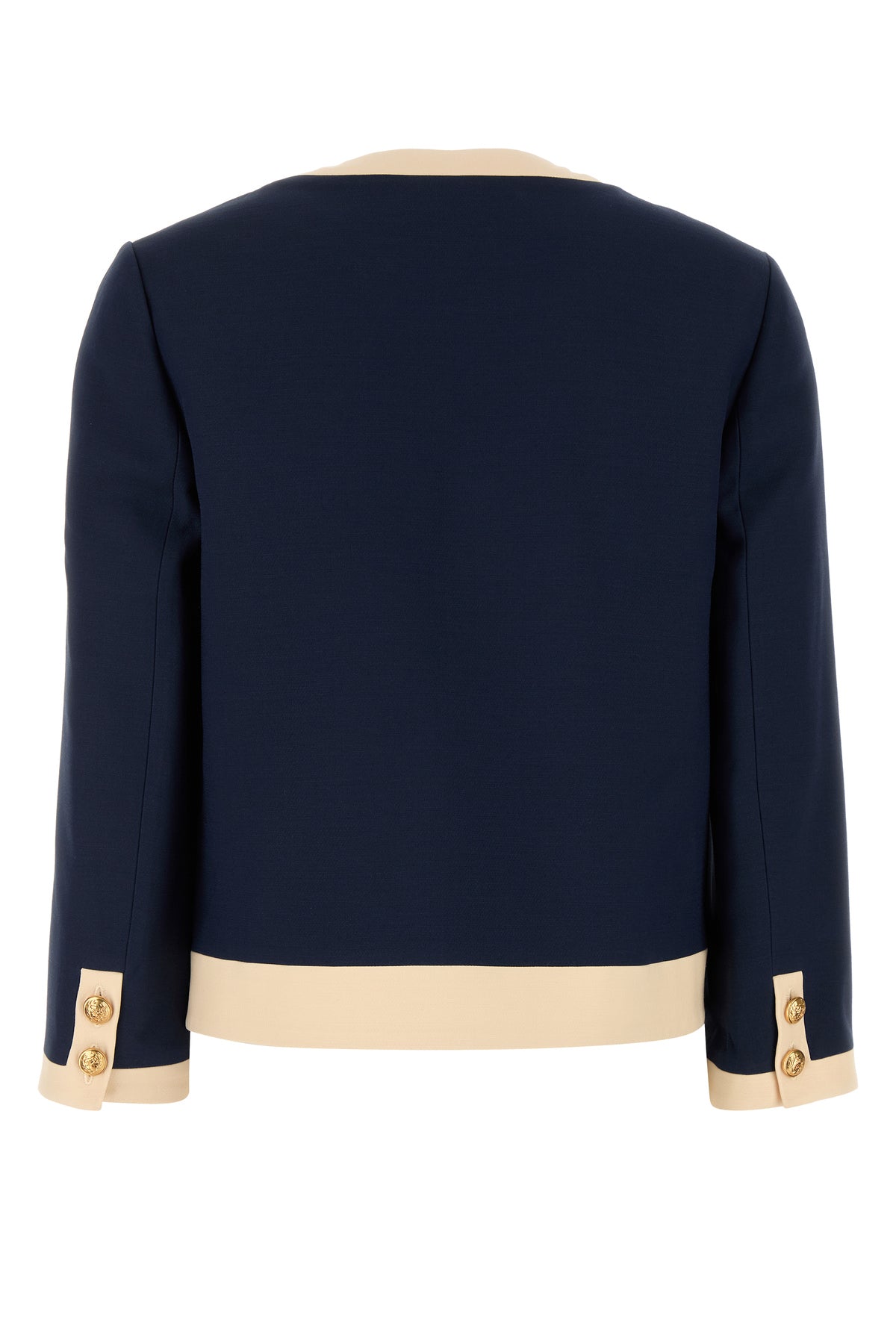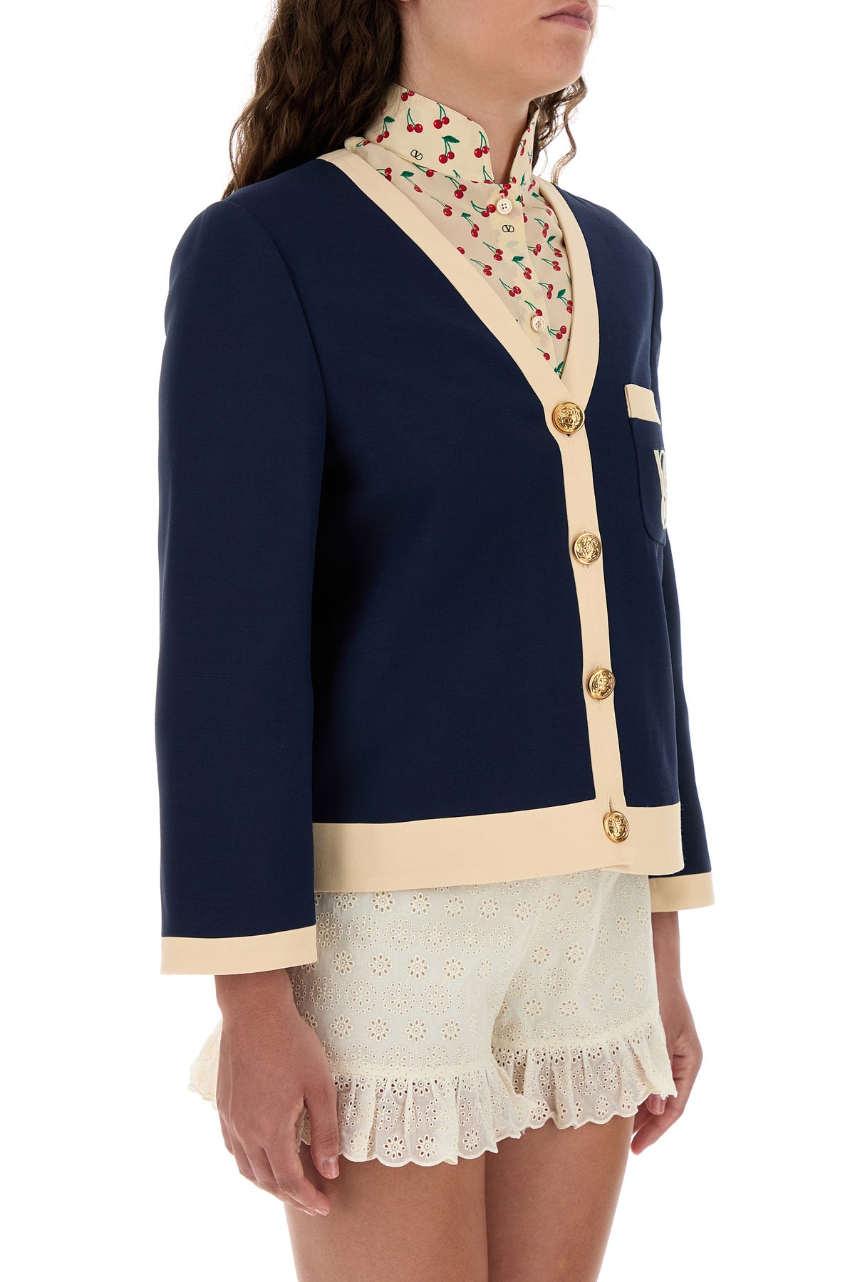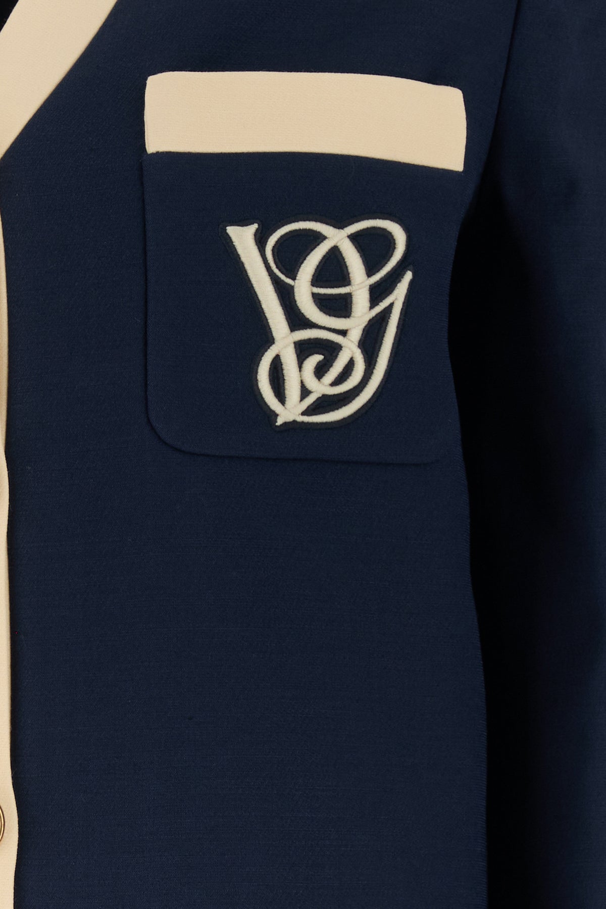 Giacca realizzata in lana vergine e seta caratterizzata da logo ricamato a contrasto sul petto.