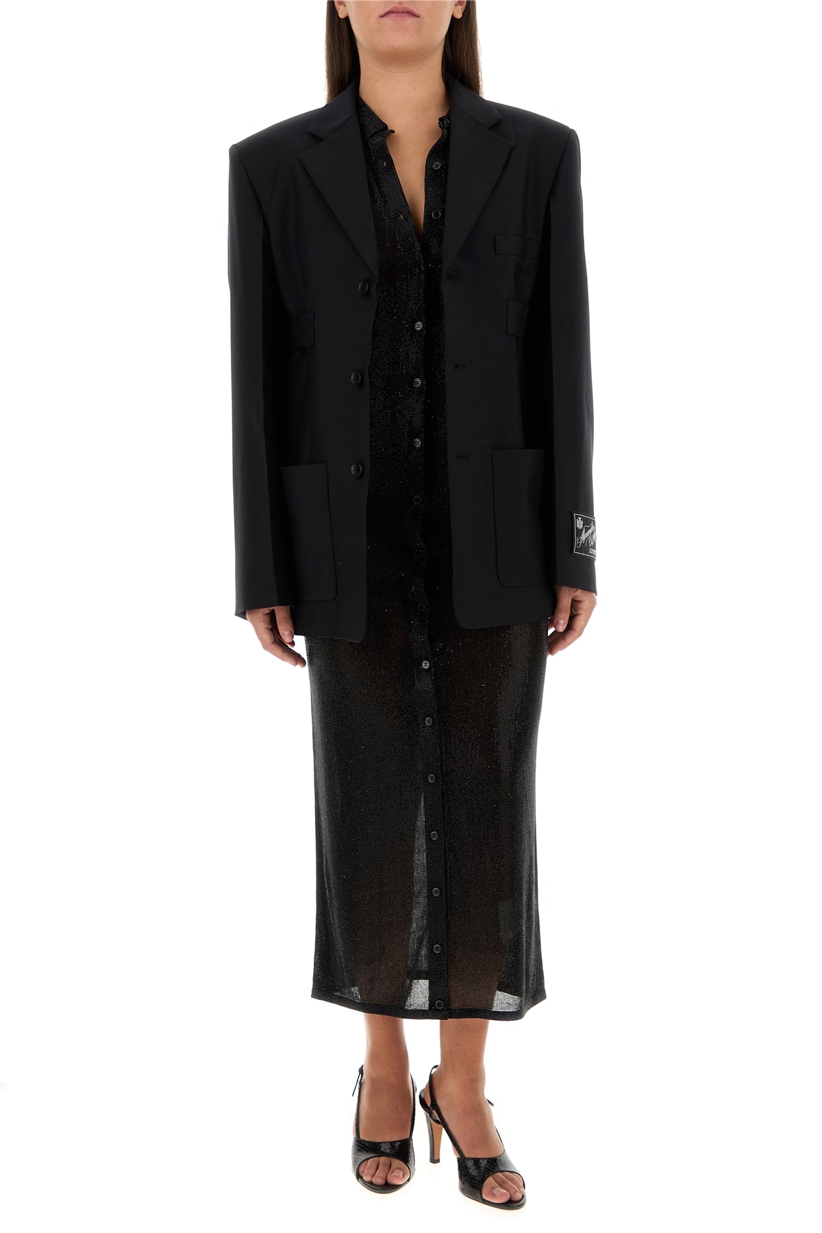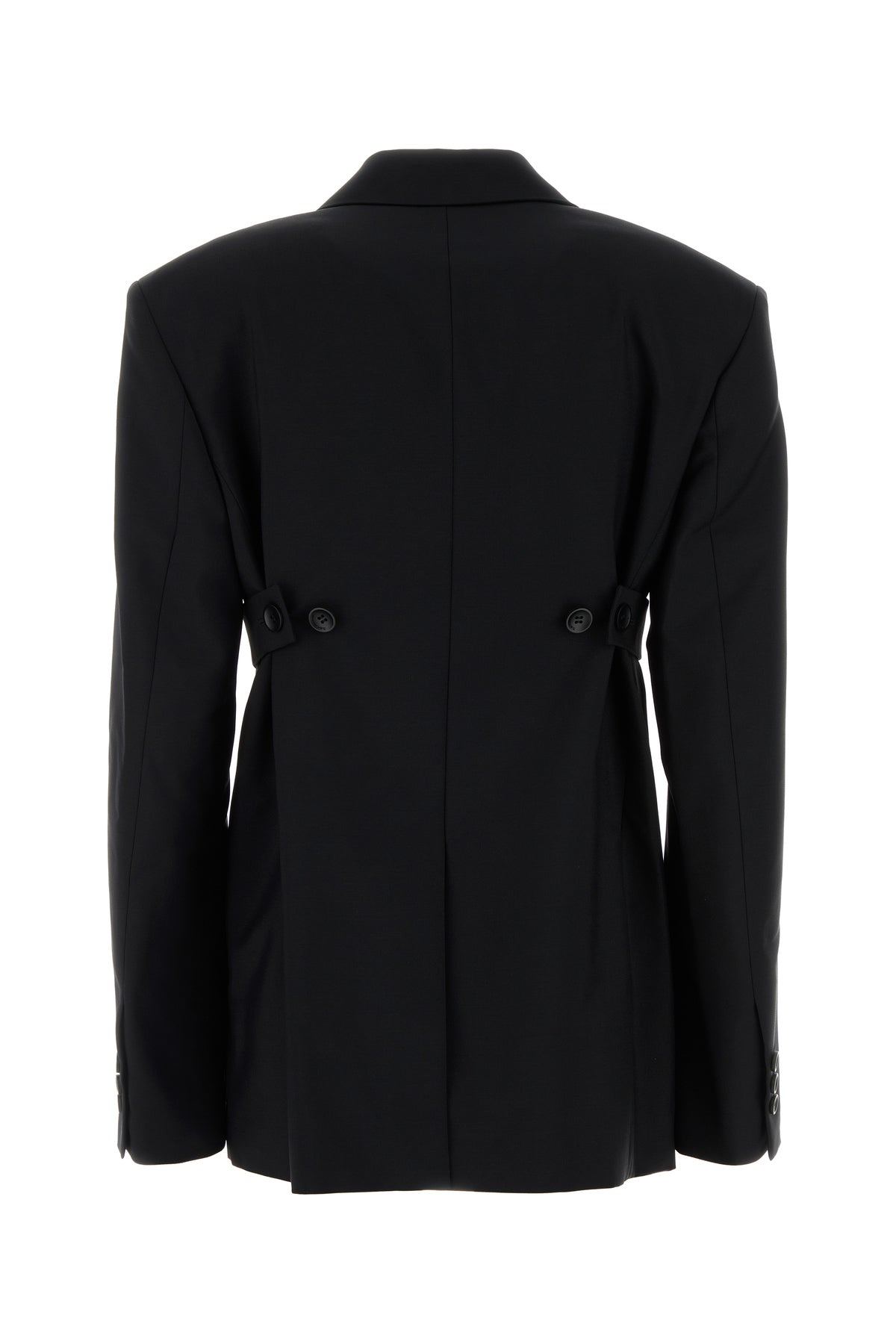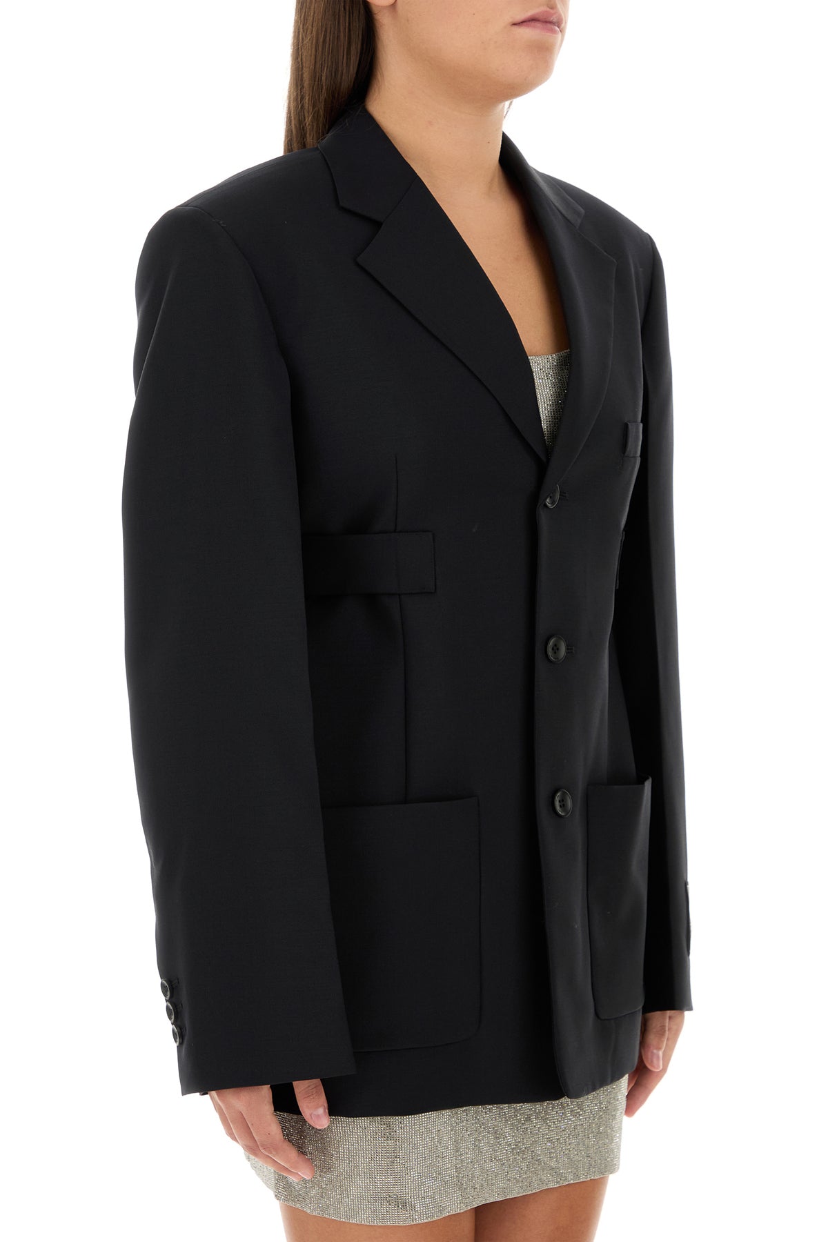 Giacca realizzata in lana e mohair arricchita da etichetta logata sul polsino.