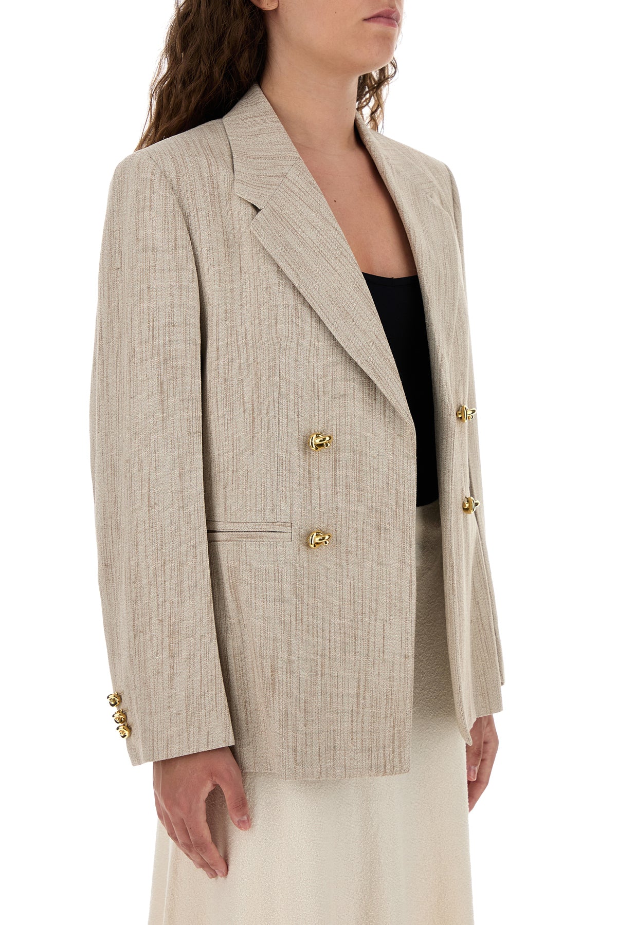 Giacca realizzata in misto viscosa arricchita da dettaglio metallico Knot sulla parte frontale.
