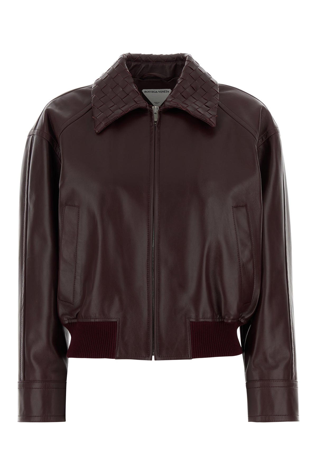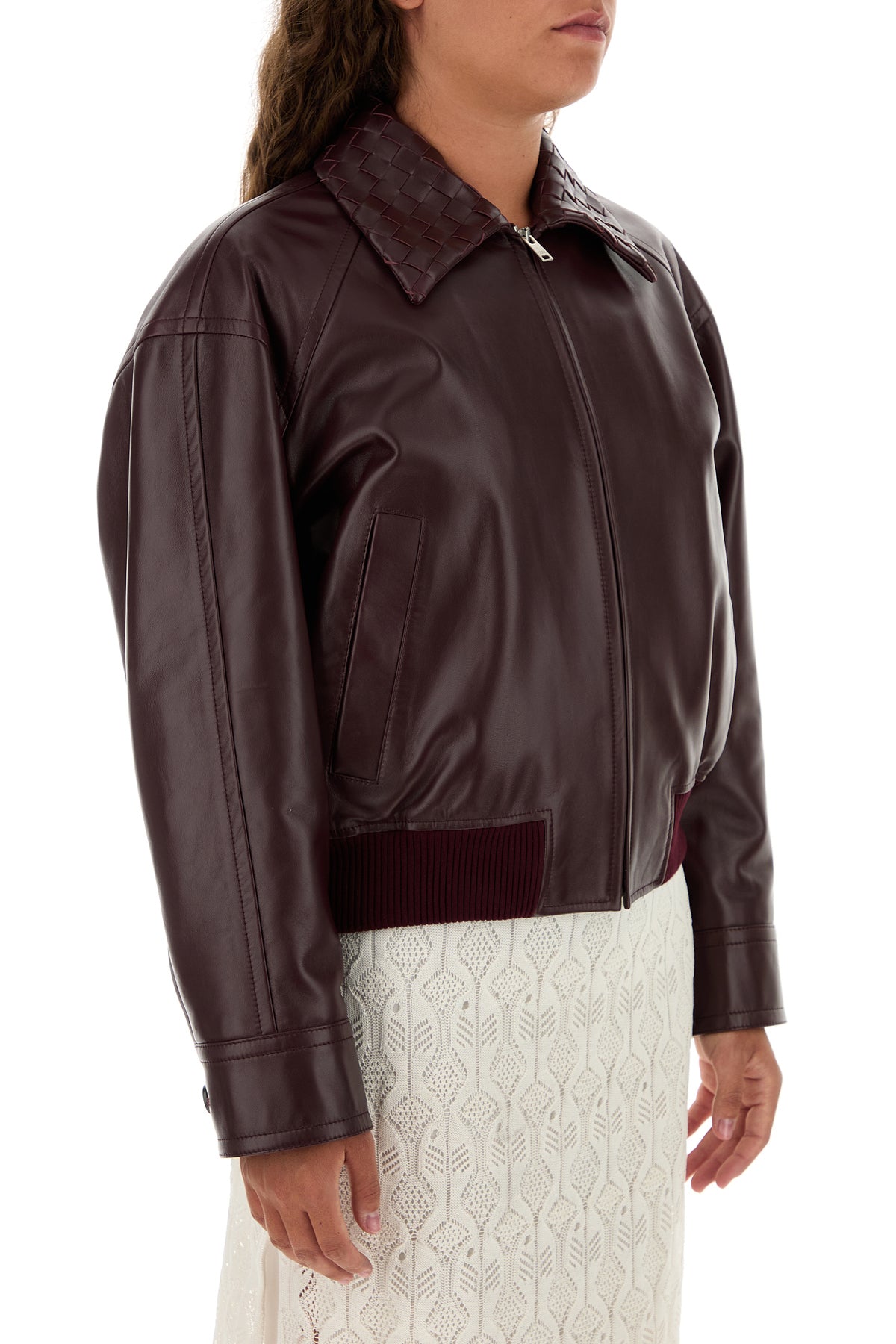 Giacca realizzata in pelle di agnello caratterizzata da iconico motivo Intrecciato sul colletto.