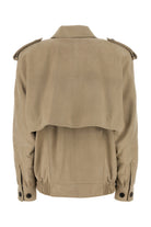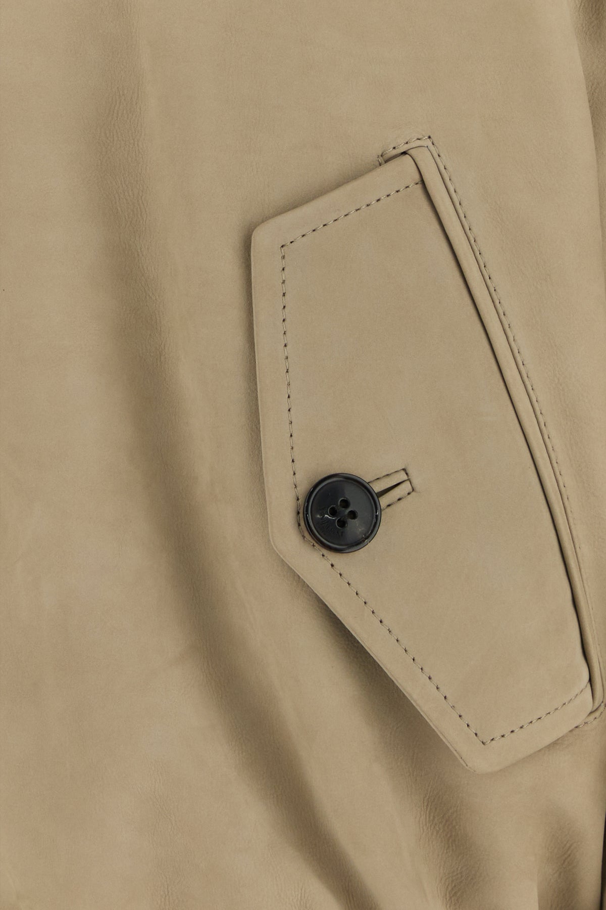 Giacca realizzata in pelle di vitello leggermente martellata caratterizzata da spalline decorative.