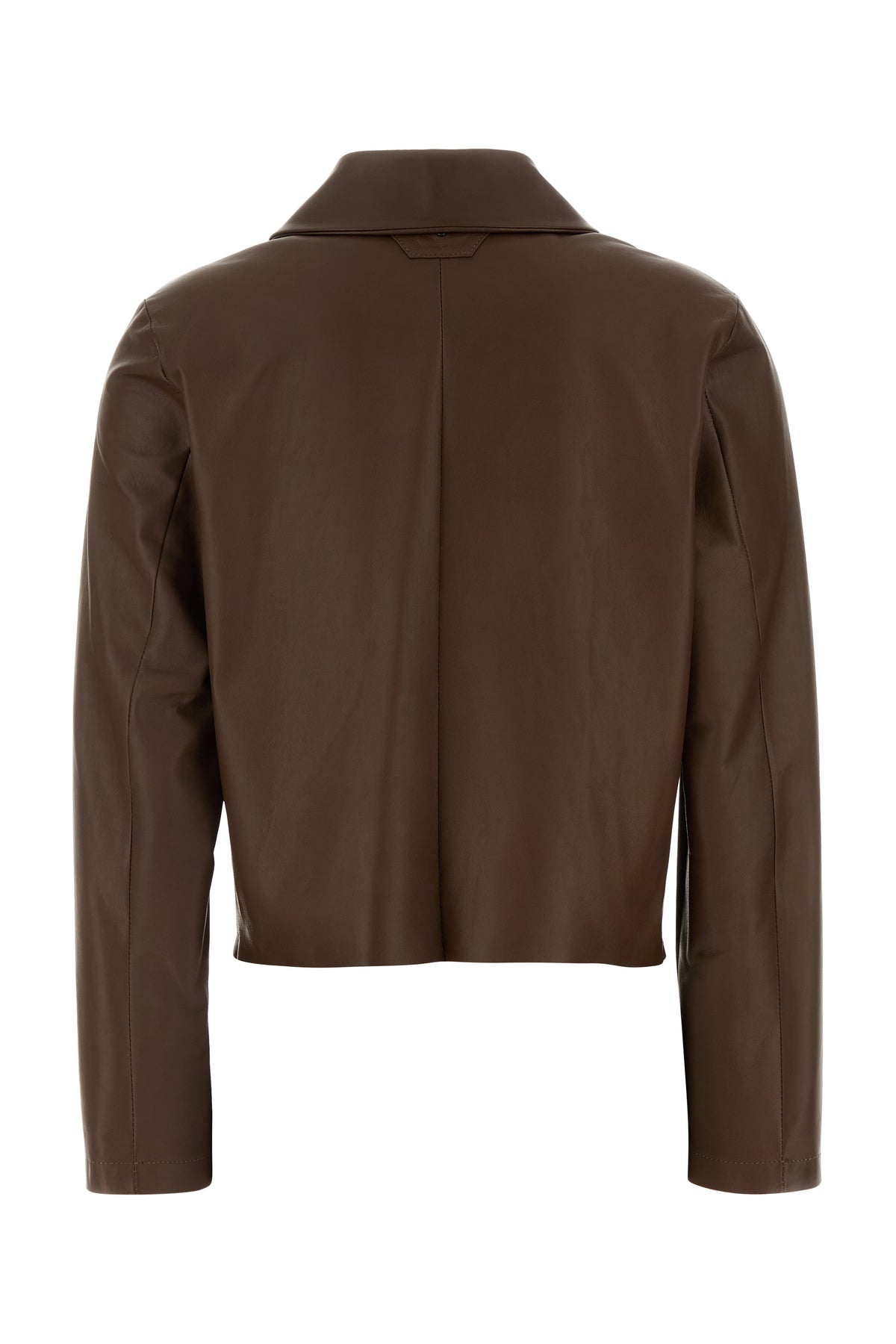 Giacca realizzata in pelle ovina arricchita da logo in lettere metalliche sul retro.