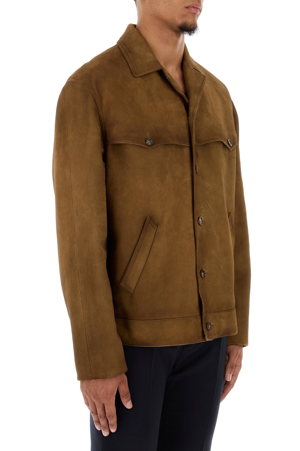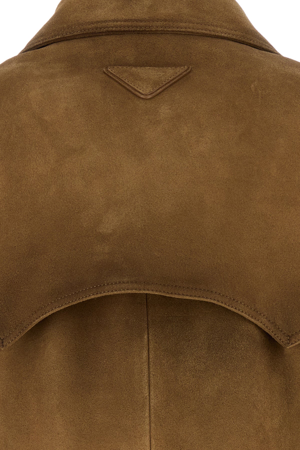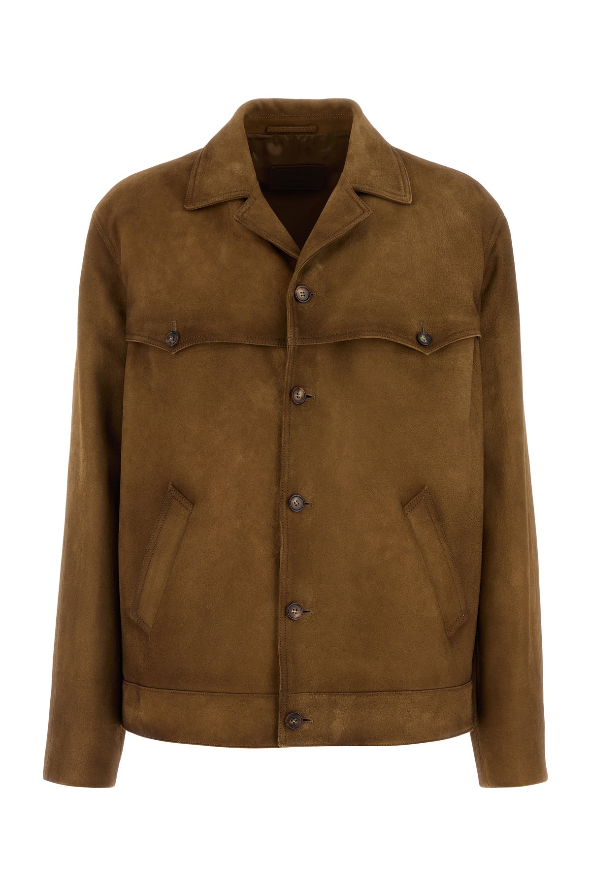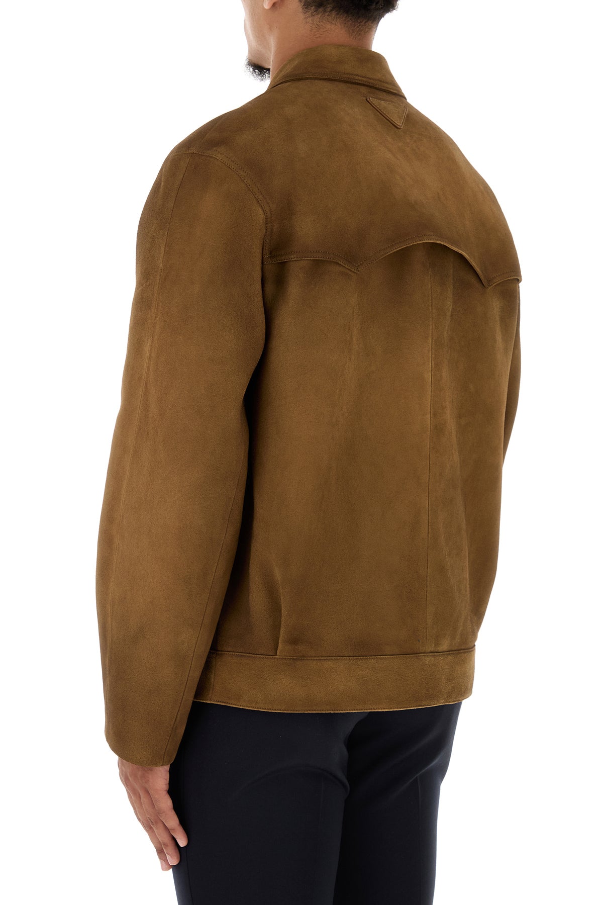 Giacca realizzata in pelle scamosciata di agnello arricchita da iconico triangolo in pelle tonale.
