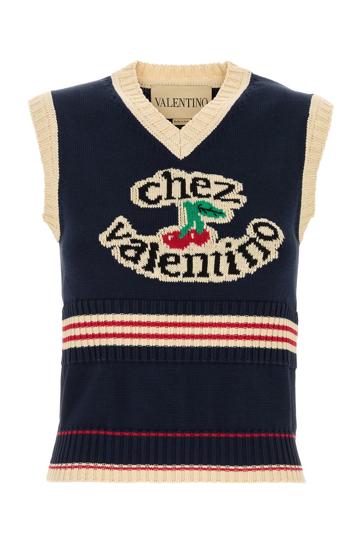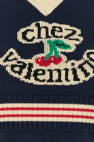 Gilet realizzato in puro cotone caratterizzato da ricamo Chez Valentino Cherryfic a contrasto sul petto.