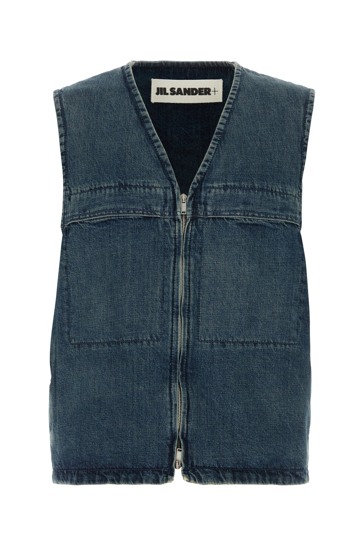 Gilet realizzato in denim di puro cotone slavato.