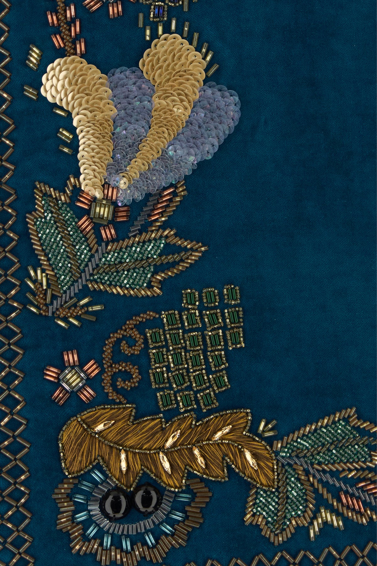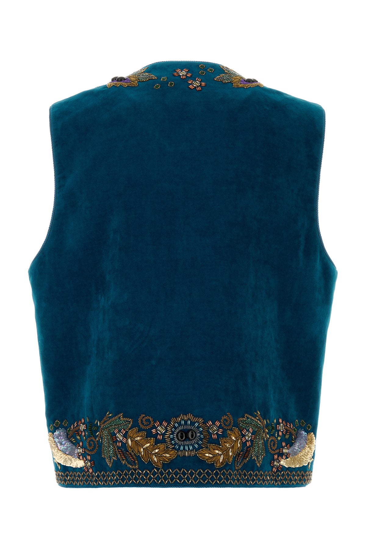 Gilet realizzato in velluto di cotone e lino arricchito da particolare decorazione con paillettes e cristalli sulla parte frontale e sul retro.