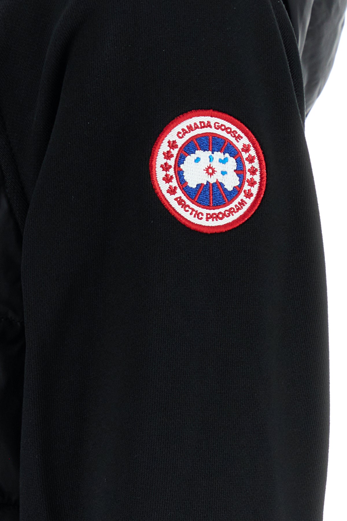 Giubbino realizzato in puro cotone con inserto in nylon trapuntato sulla parte frontale arricchito da applicazione logata sulla manica.