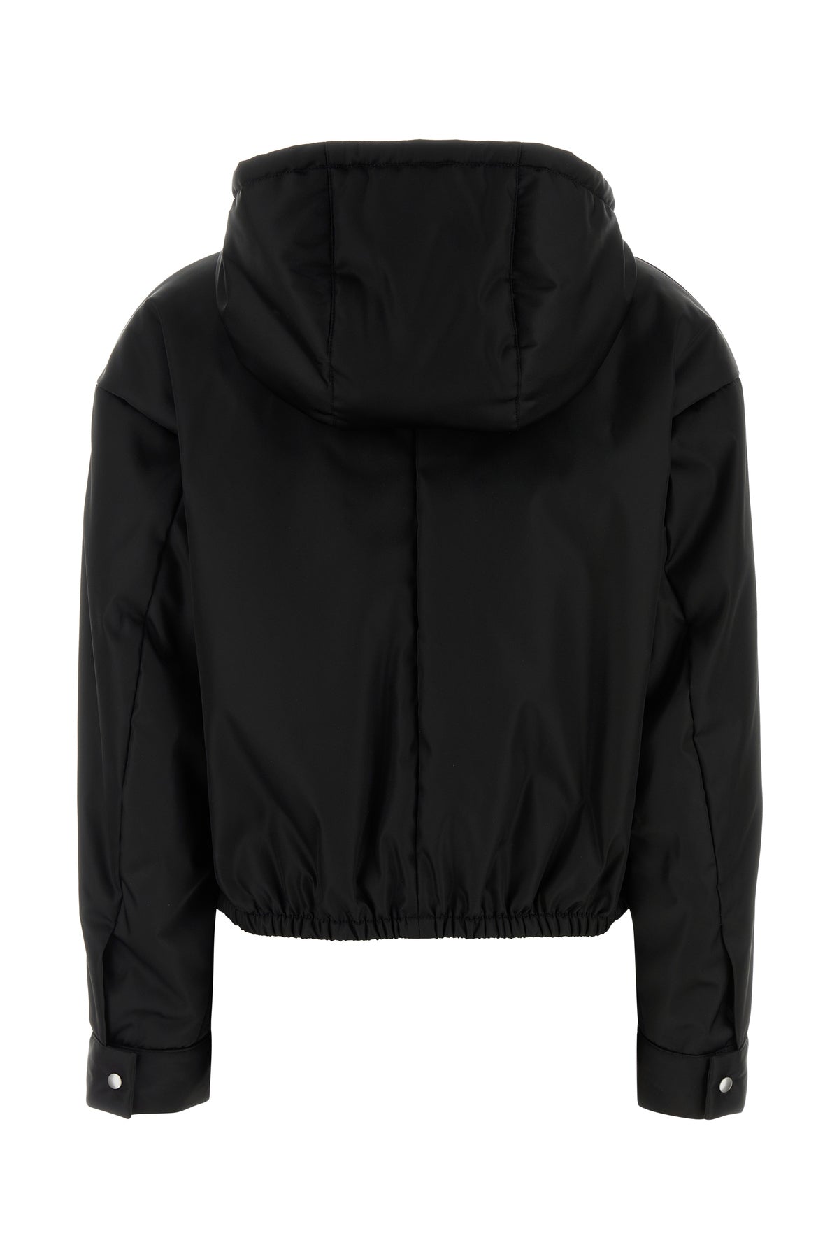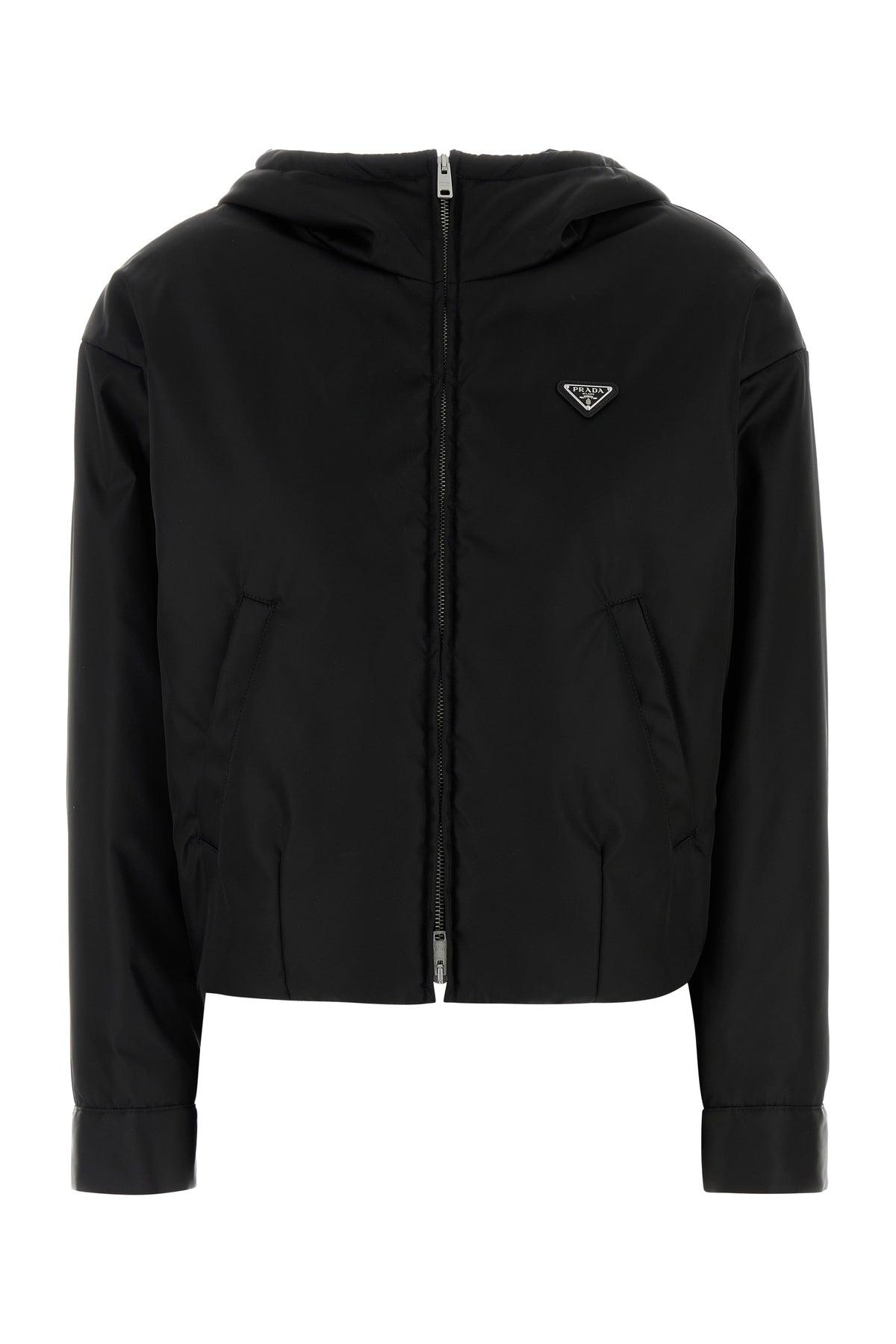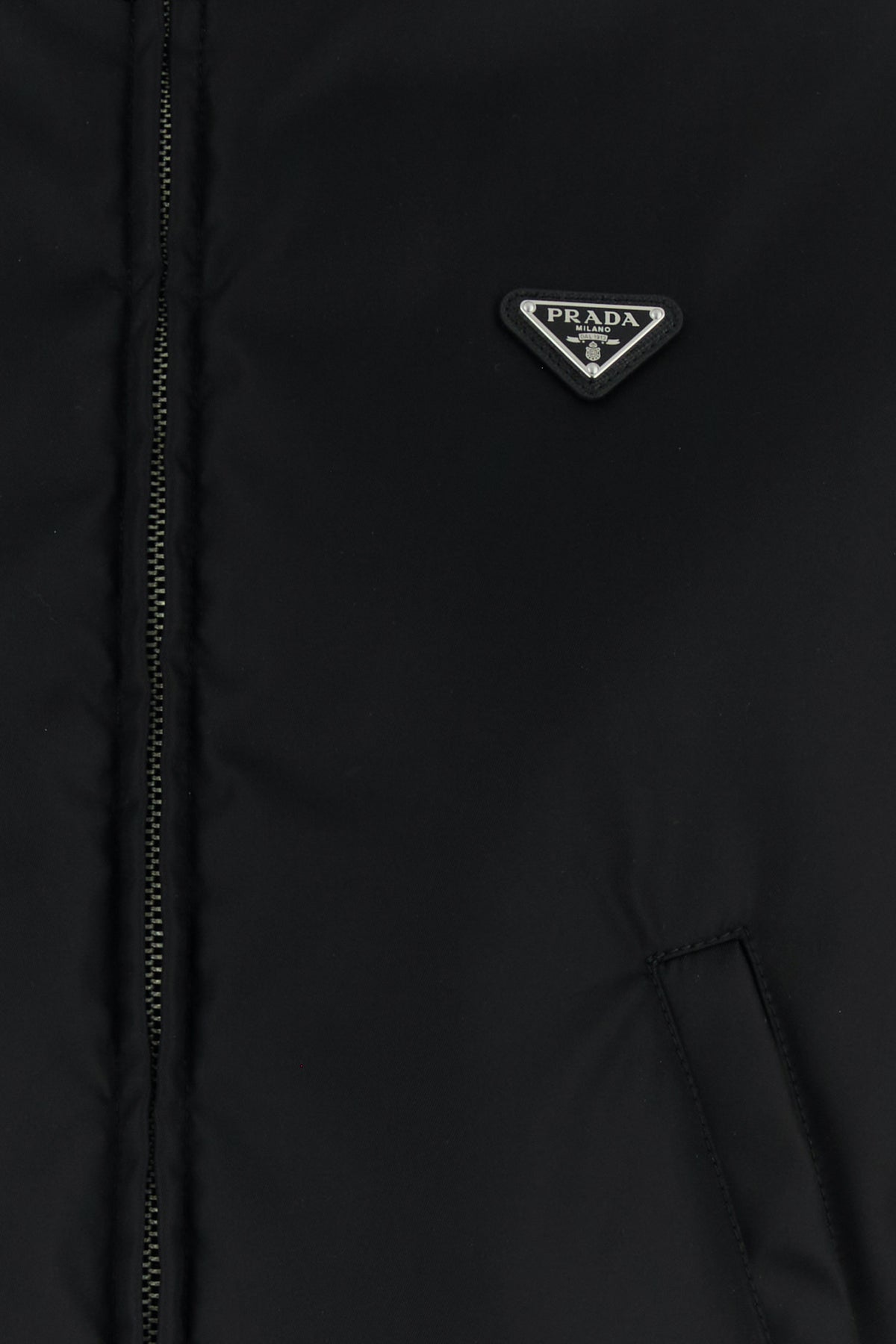 Giubbino imbottito realizzato in Re-Nylon arricchito da iconico triangolo logato in metallo sul petto.