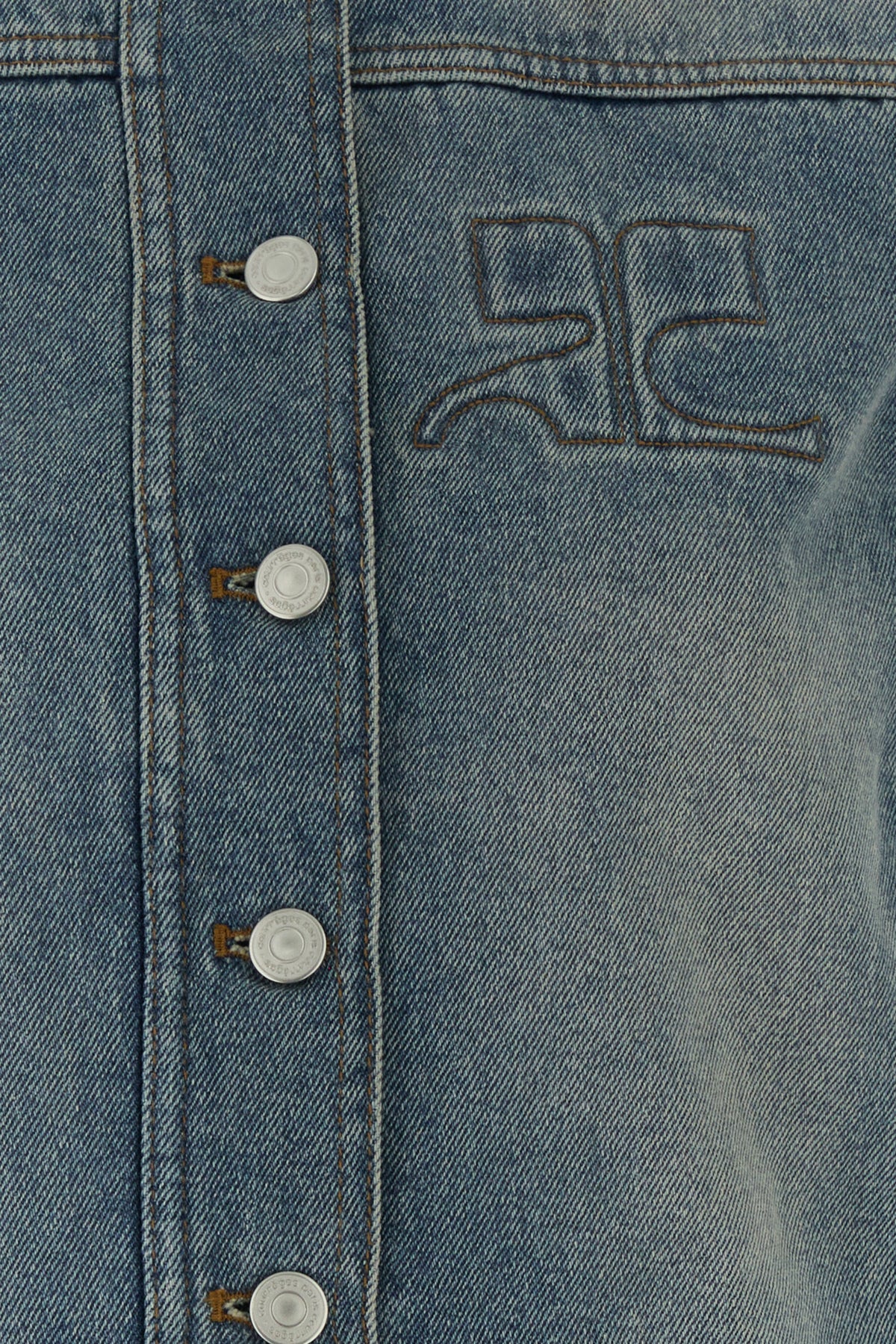 Giubbino realizzato in denim di puro cotone slavato caratterizzato da logo ricamato sul petto.