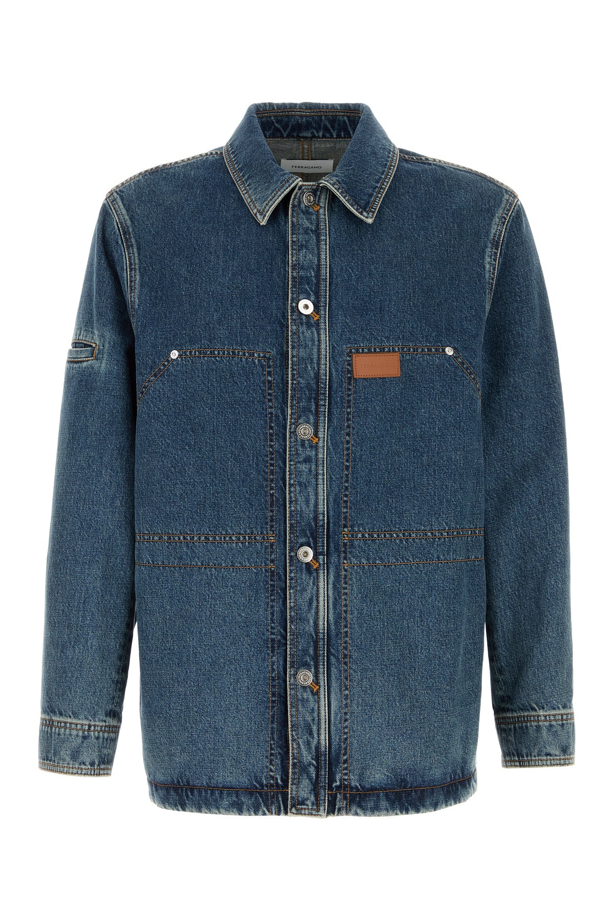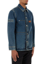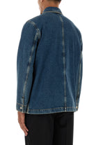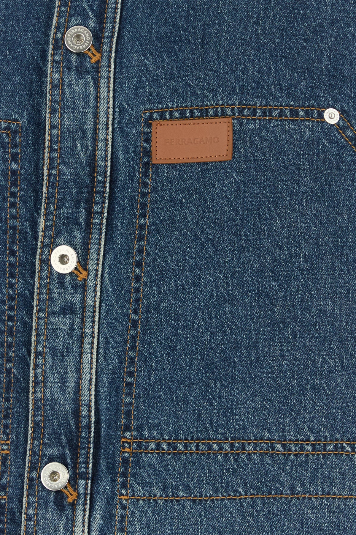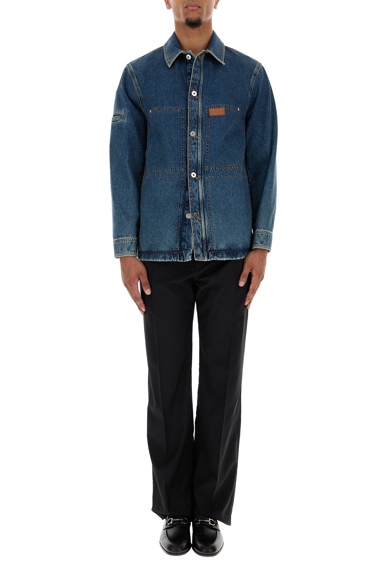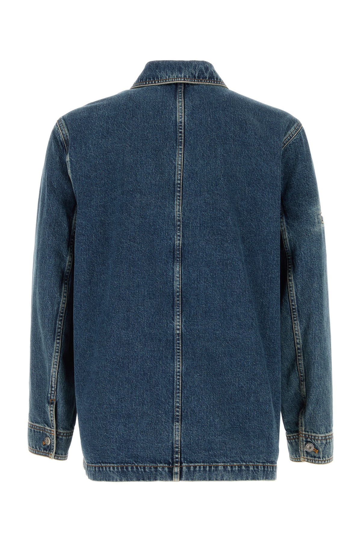 Giubbino realizzato in denim di puro cotone slavato arricchito da etichetta logata in pelle sulla parte frontale.