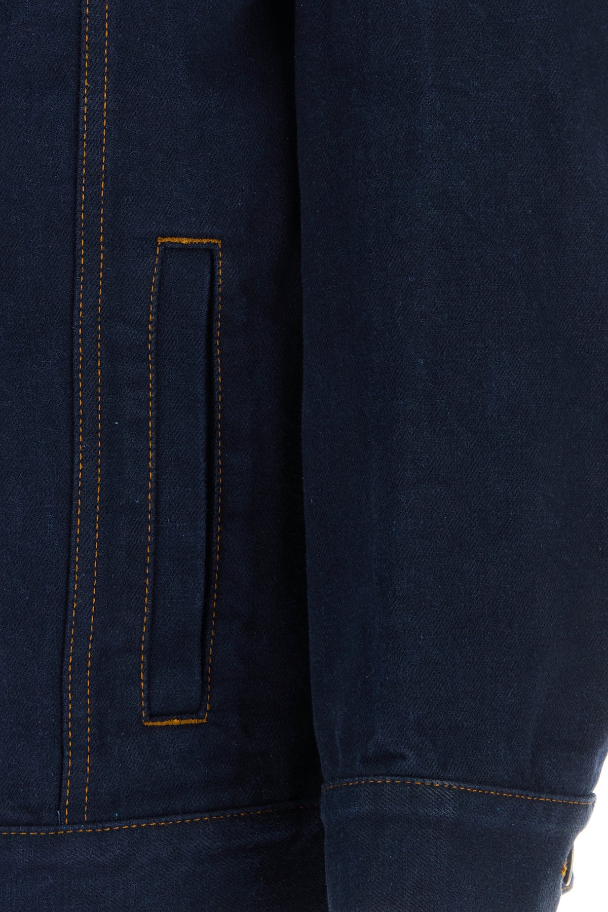 Giubbino realizzato in denim di puro cotone arricchito da etichetta logata a contrasto sul retro.