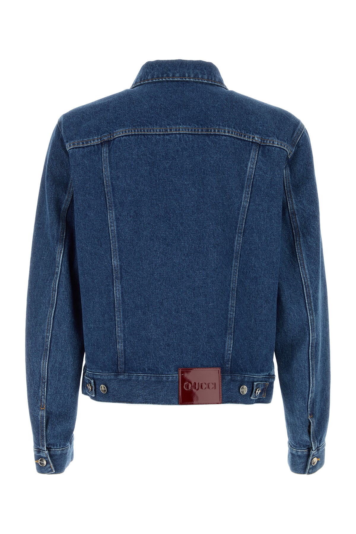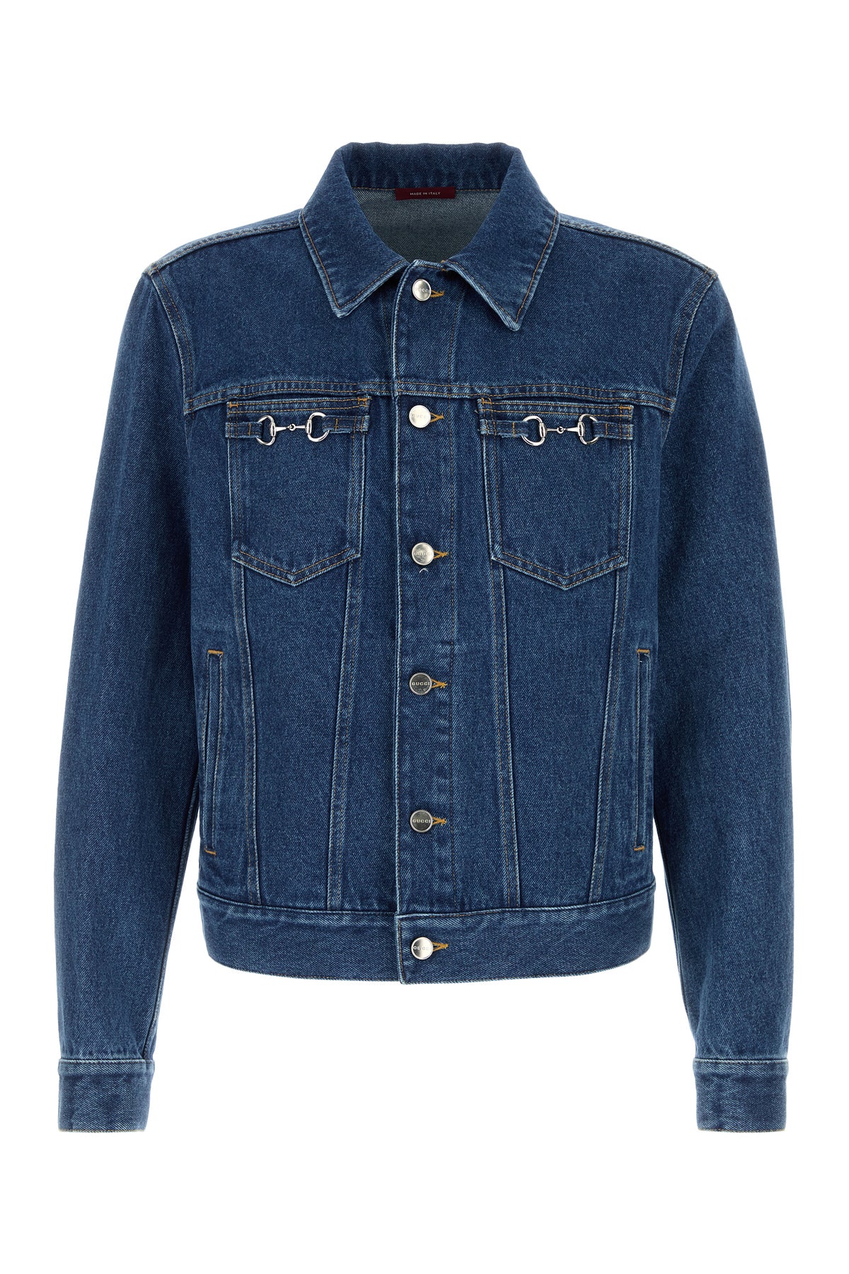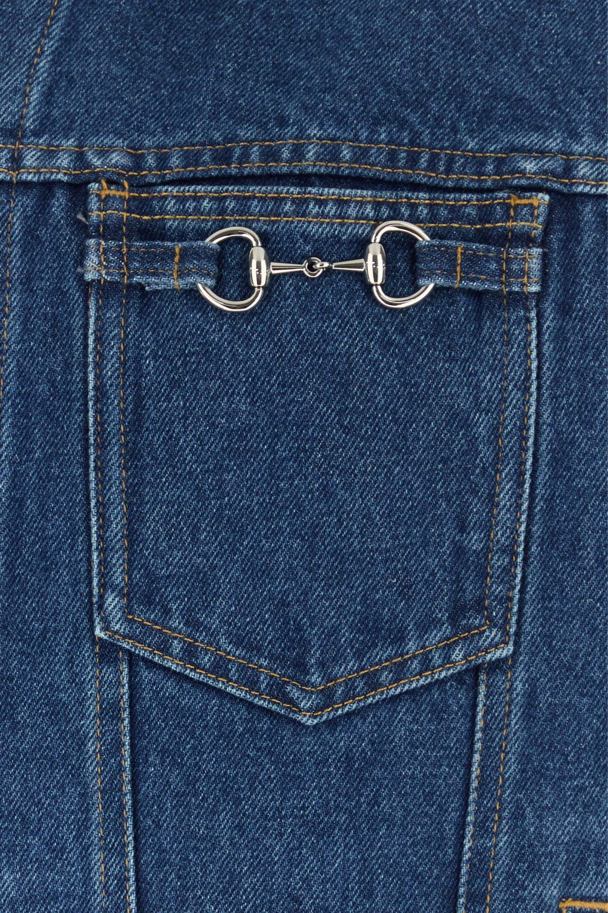Giubbino realizzato in denim di puro cotone arricchito da dettagli metallici Morsetto sul petto ed etichetta logata a contrasto sul retro.