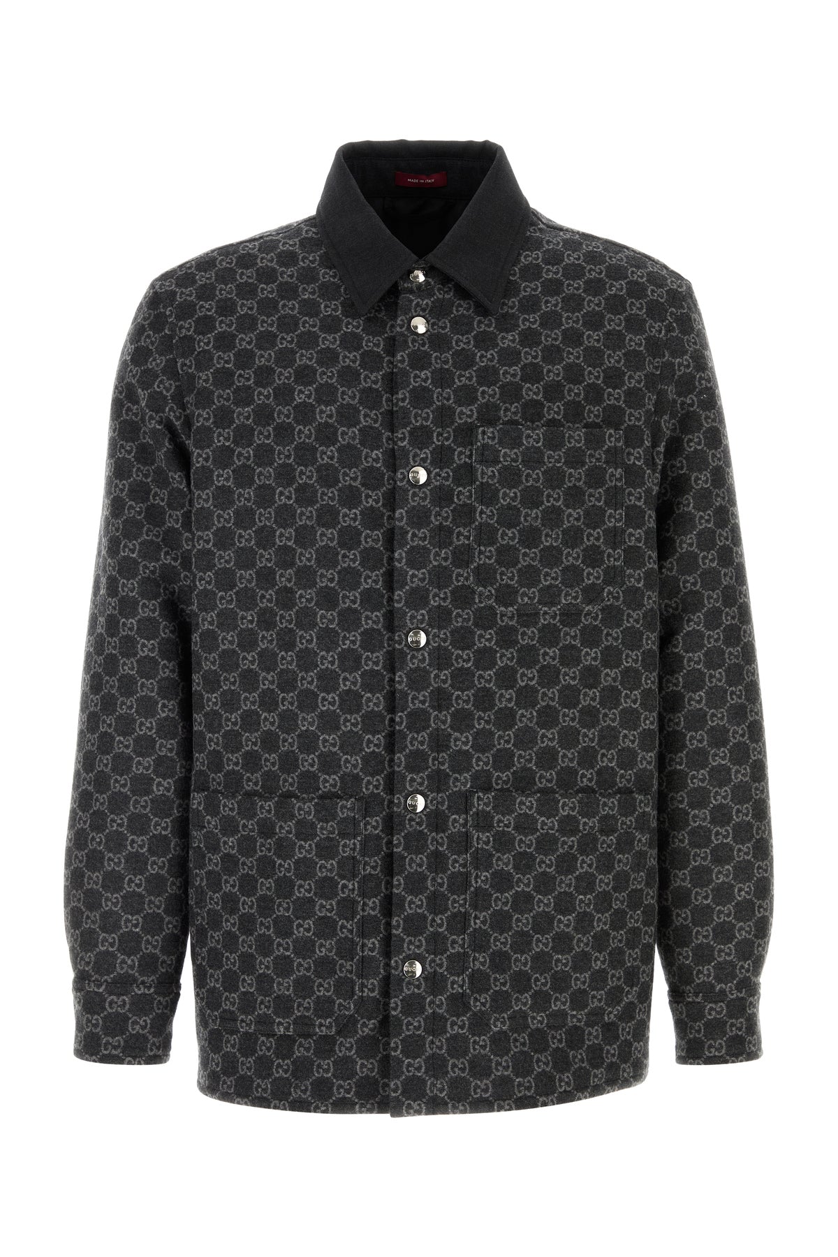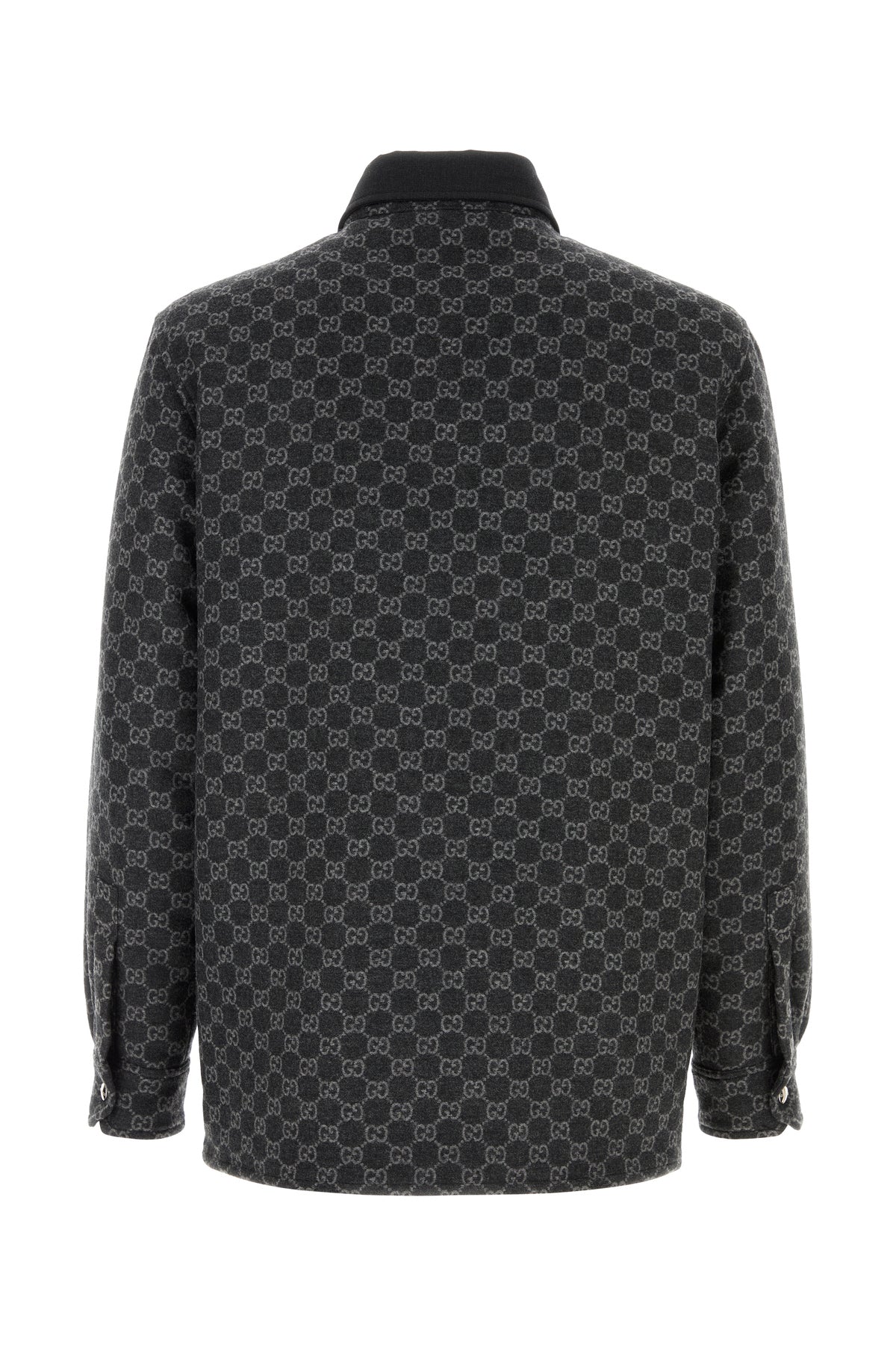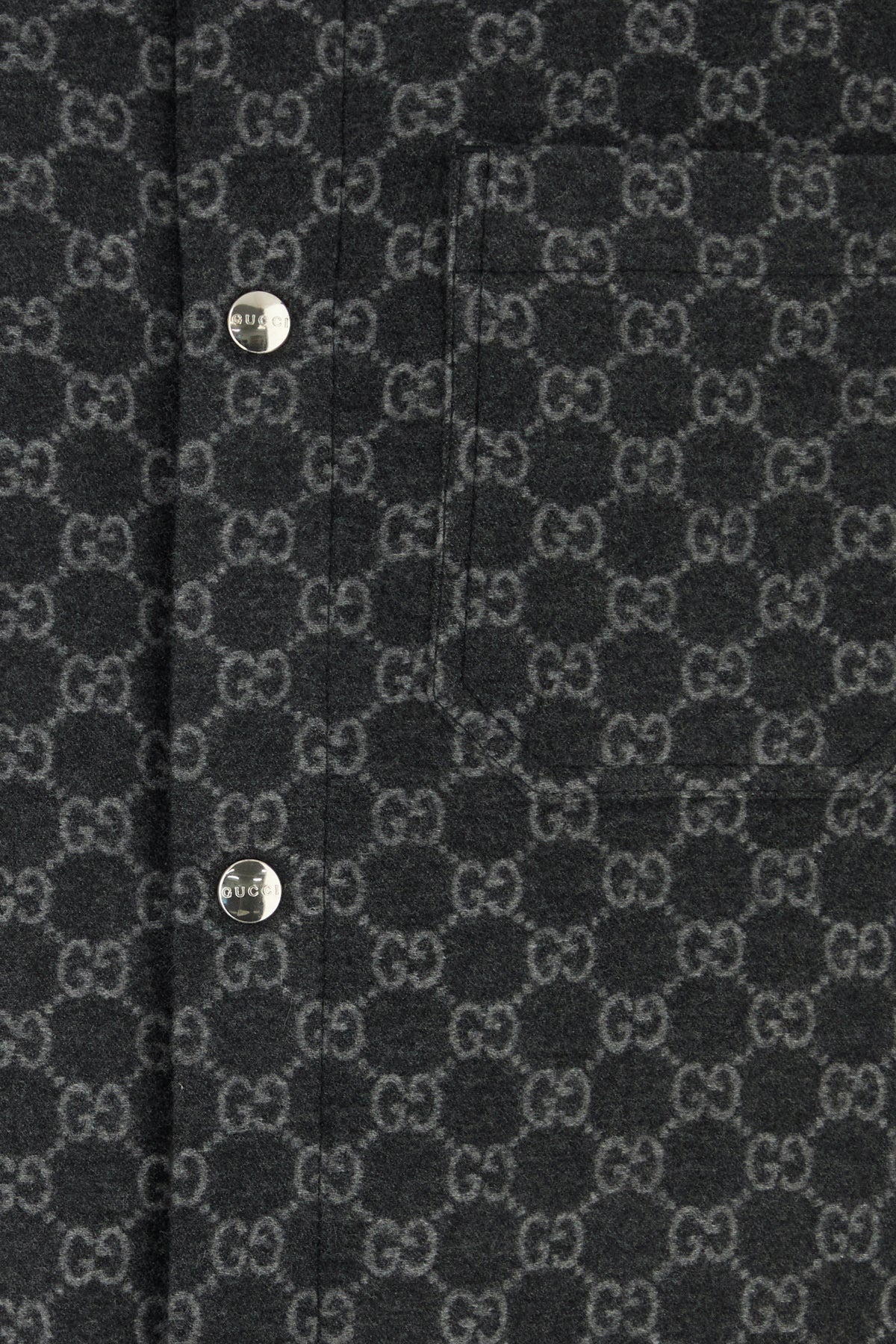 Giubbino leggermente imbottito realizzato in flanella di pura lana caratterizzata da ricamo a motivo GG su tutta la superficie.
