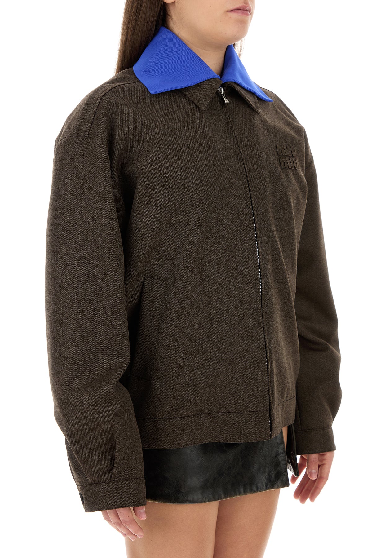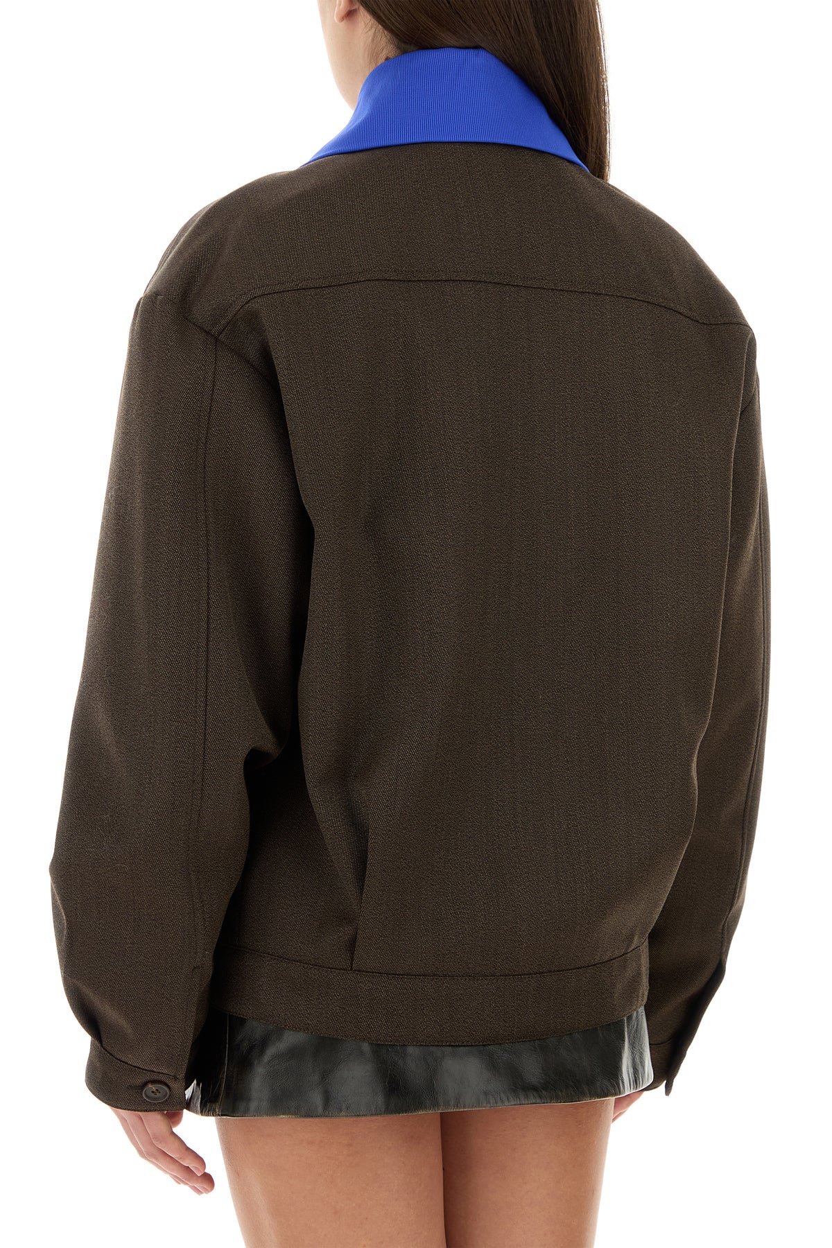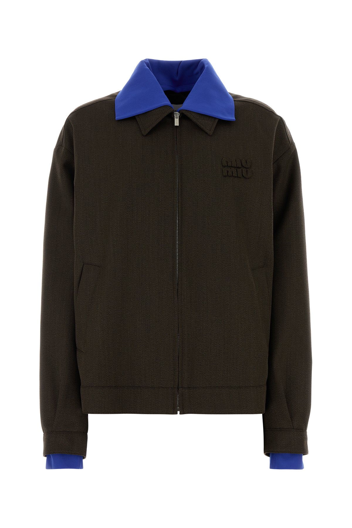 Giubbino realizzato in pura lana vergine arricchito da applicazione logata sul petto.