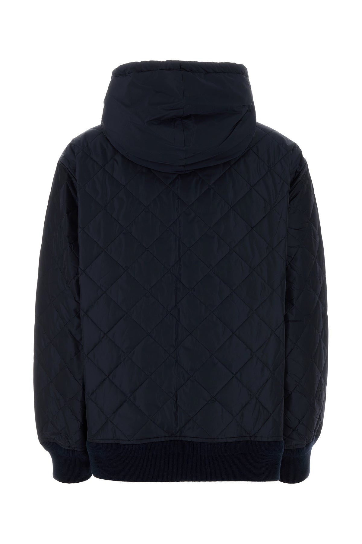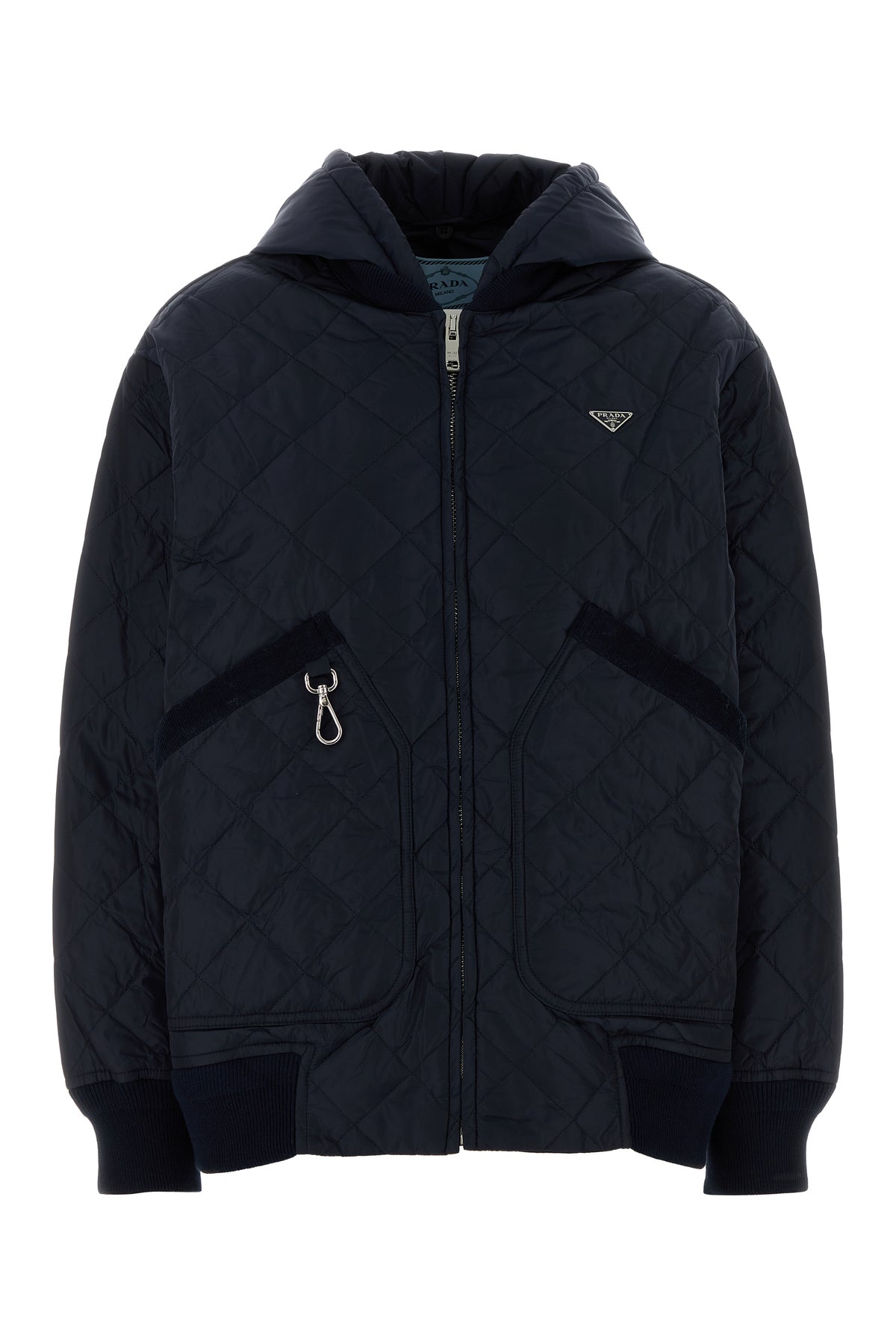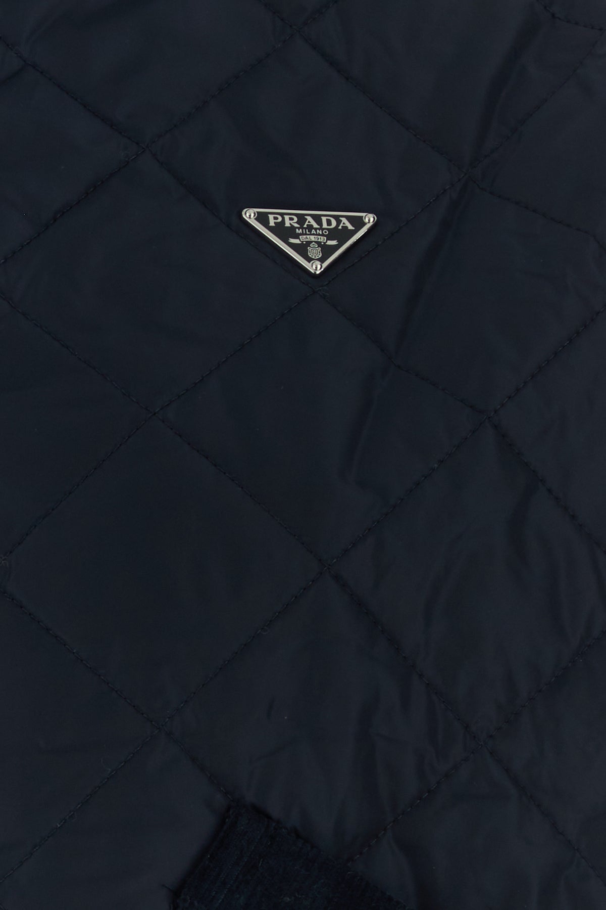 Giubbino realizzato in nylon trapuntato arricchito da iconico triangolo metallico logato sul petto.