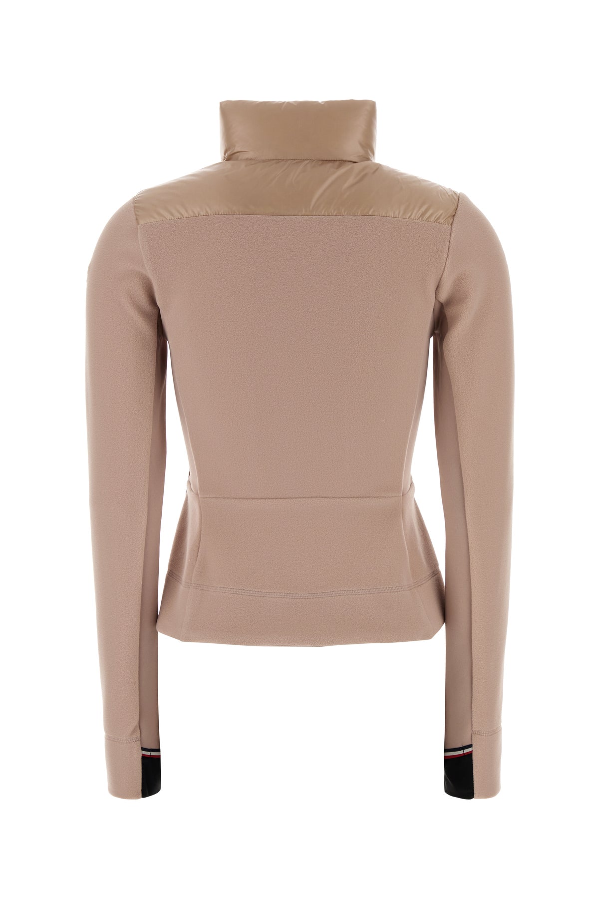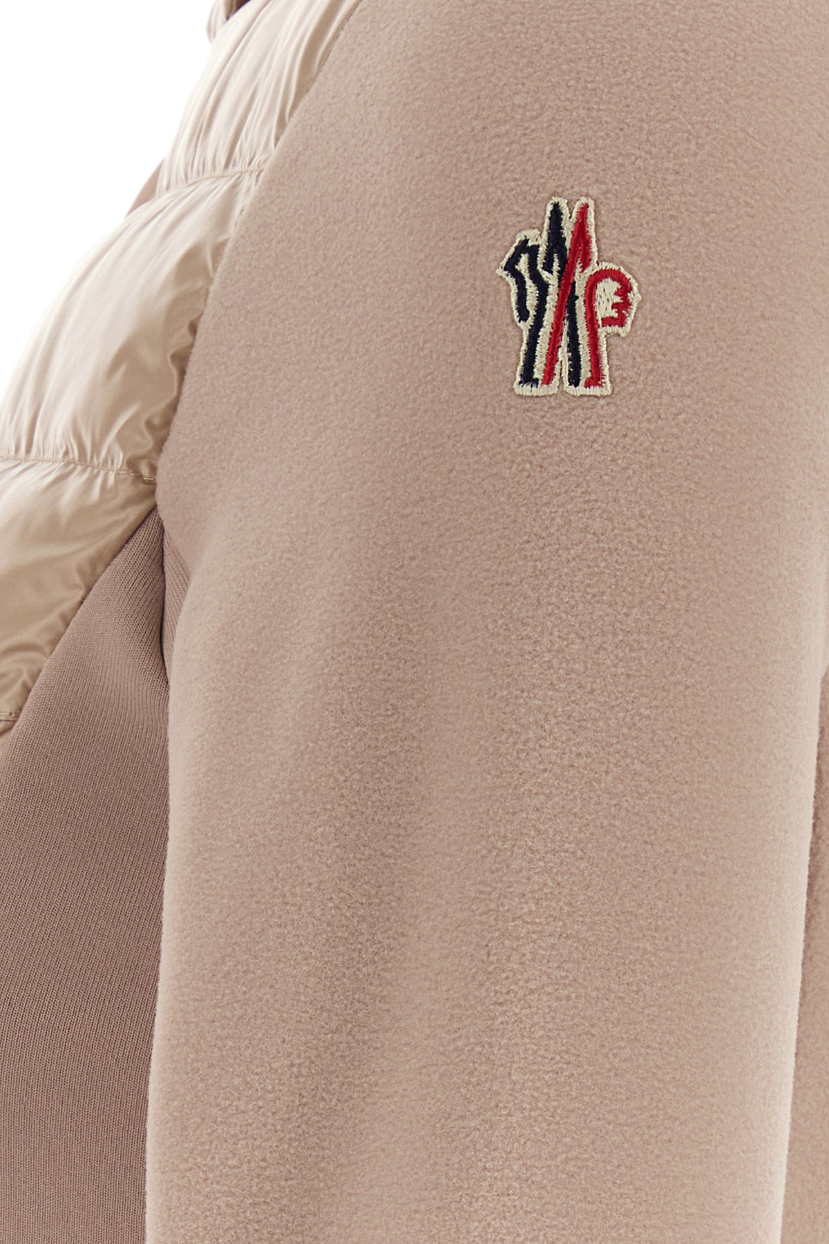 Giubbino realizzato in poliestere stretch con inserto in poliestere trapuntato sulla parte frontale arricchito da applicazione logata sulla manica.