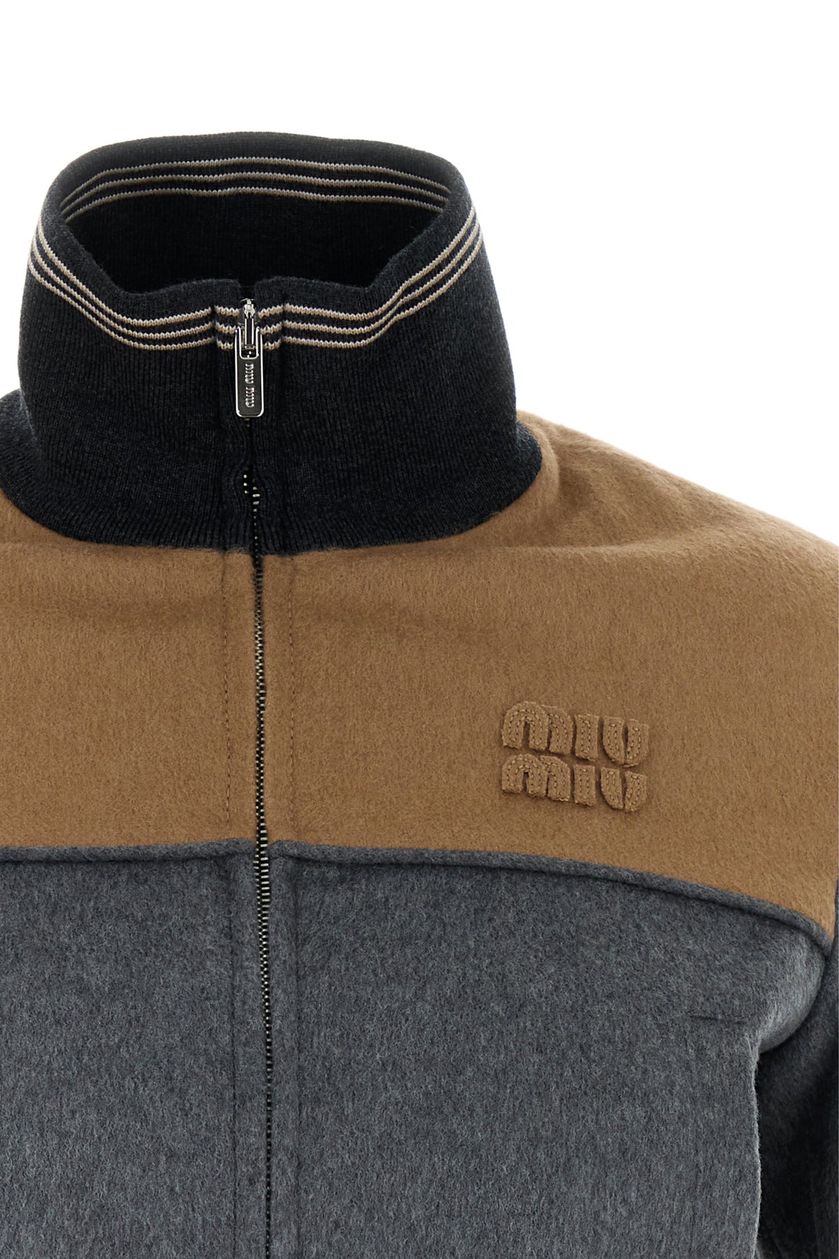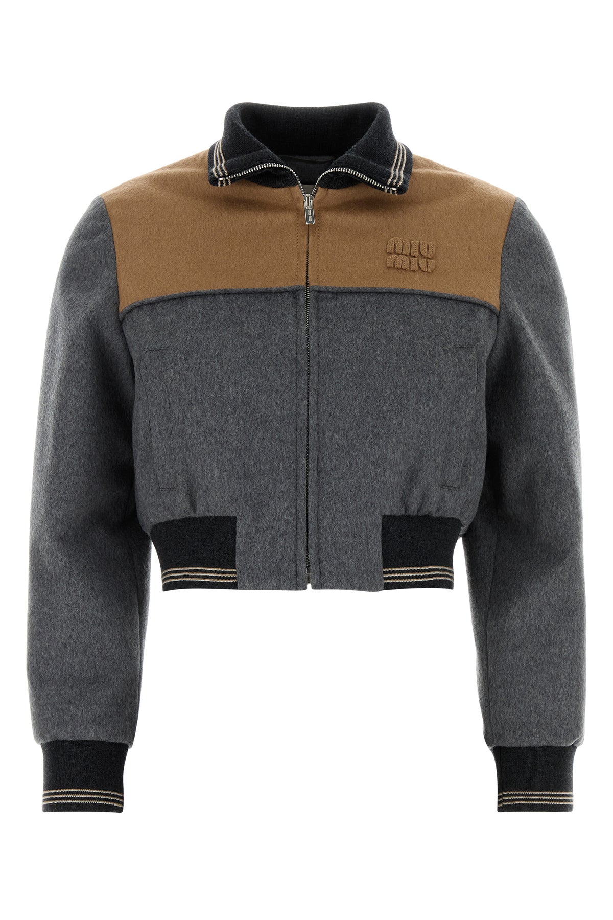 Giubbino dal taglio corto realizzato in velour di lana vergine e cashmere arricchito da applicazione logata sul petto.