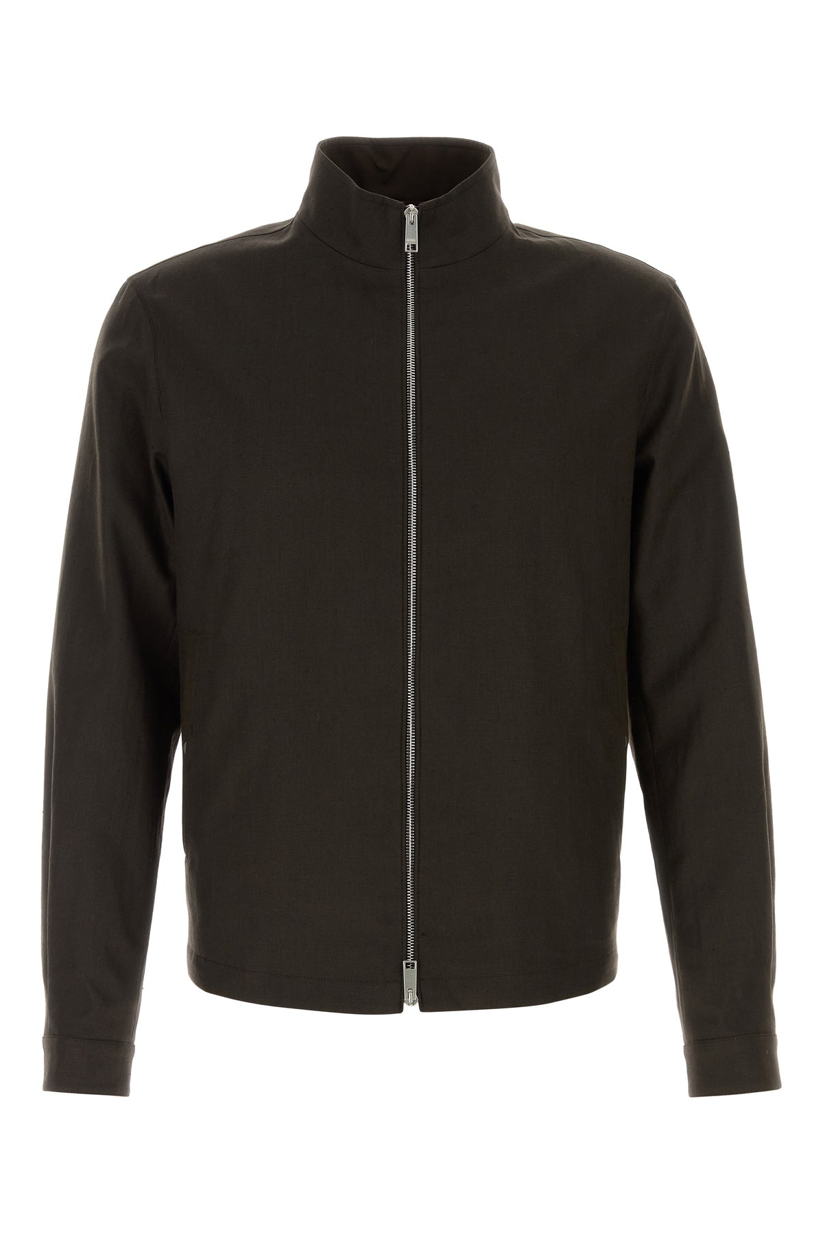 Giubbino realizzato in puro lino caratterizzato da collo alto.